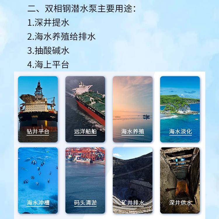 2205双相钢潜水电泵 适用于酸碱度较强水质海水泵 ABS CCS均可