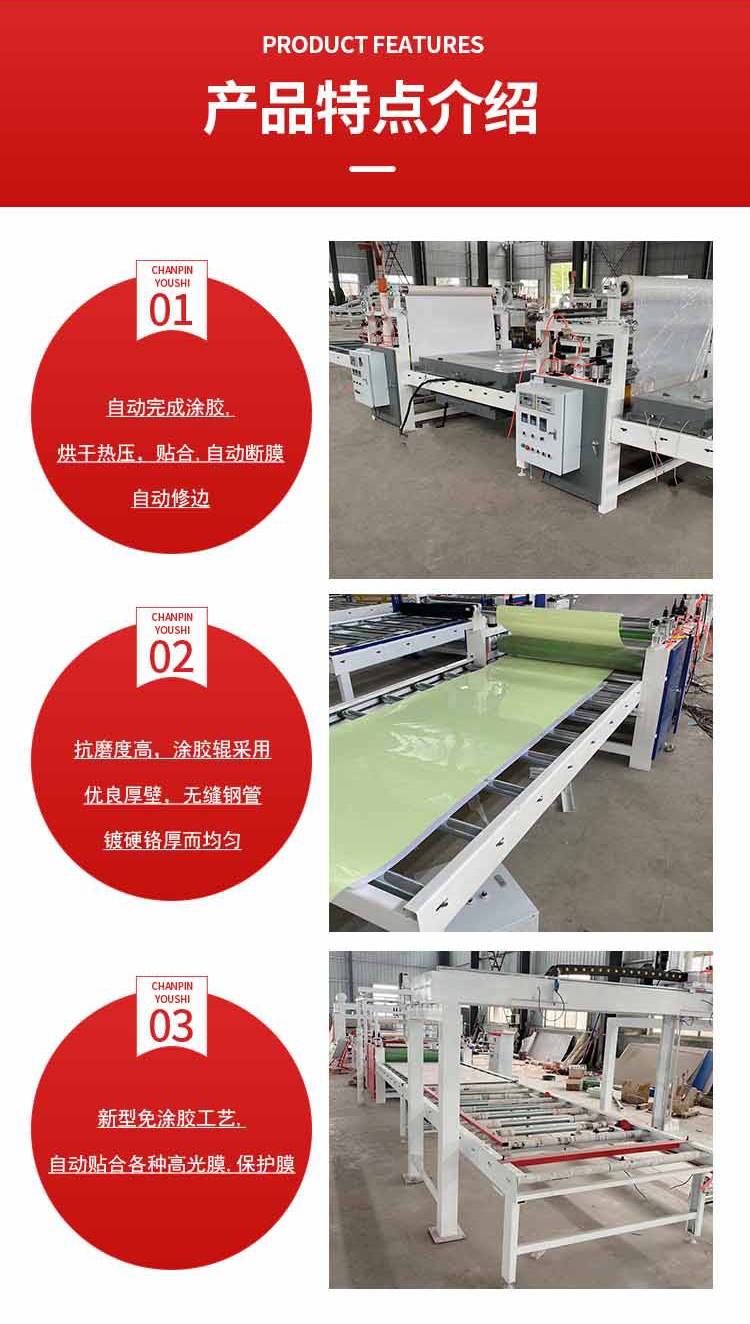 全自动PET膜覆膜机 平板门高光膜平贴机 PUR热熔胶贴面机