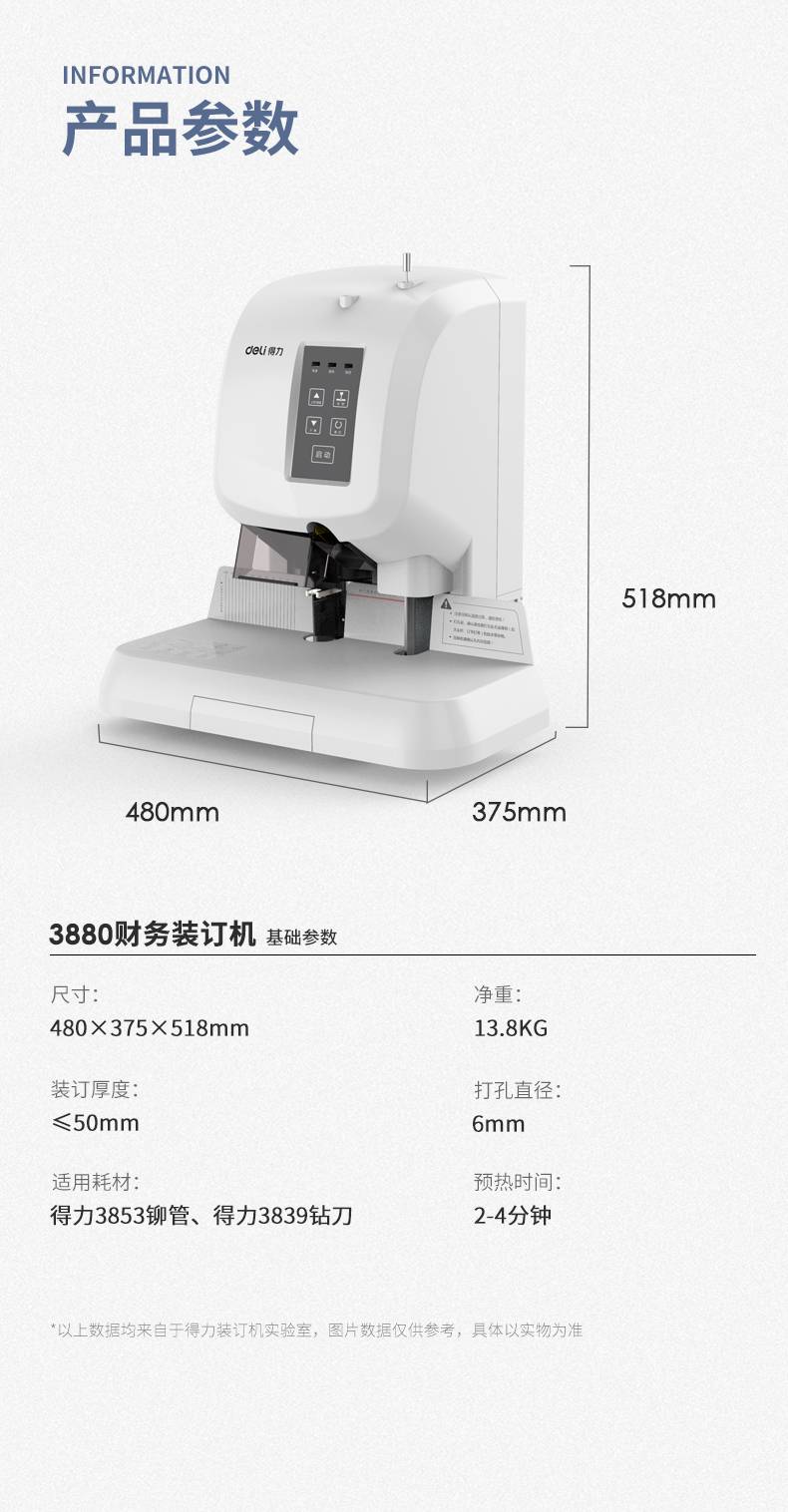 得力3880全自动装订机电动打孔机财务凭证热熔胶铆管