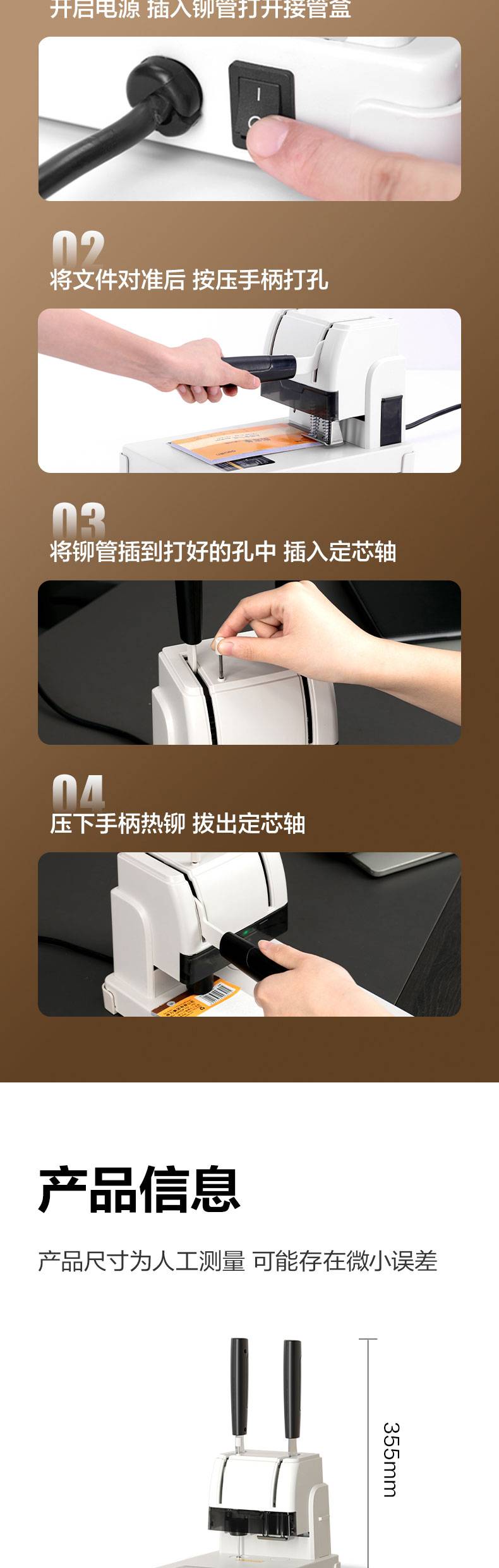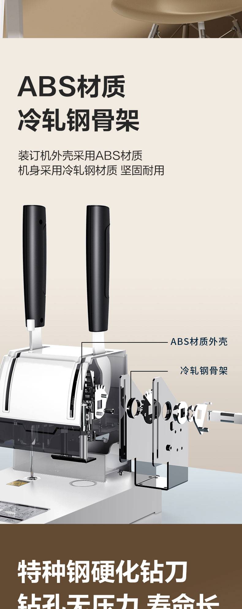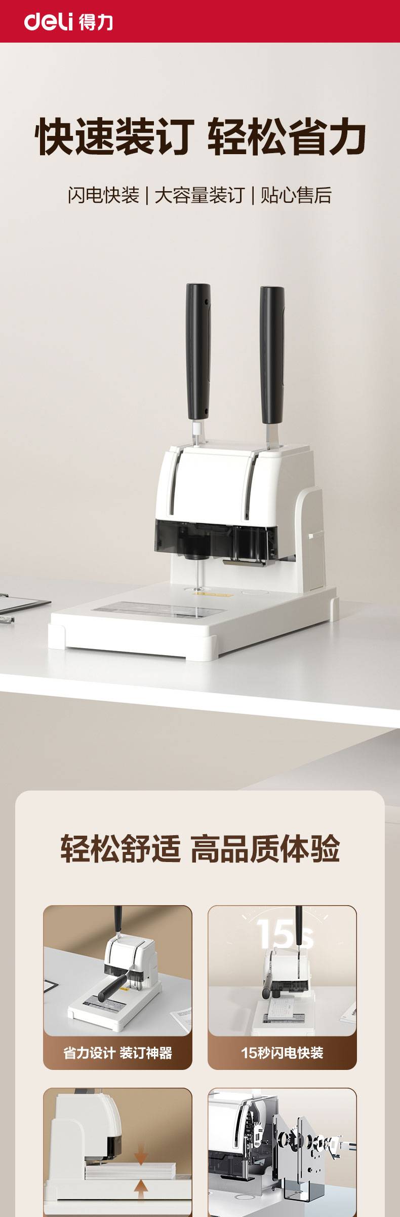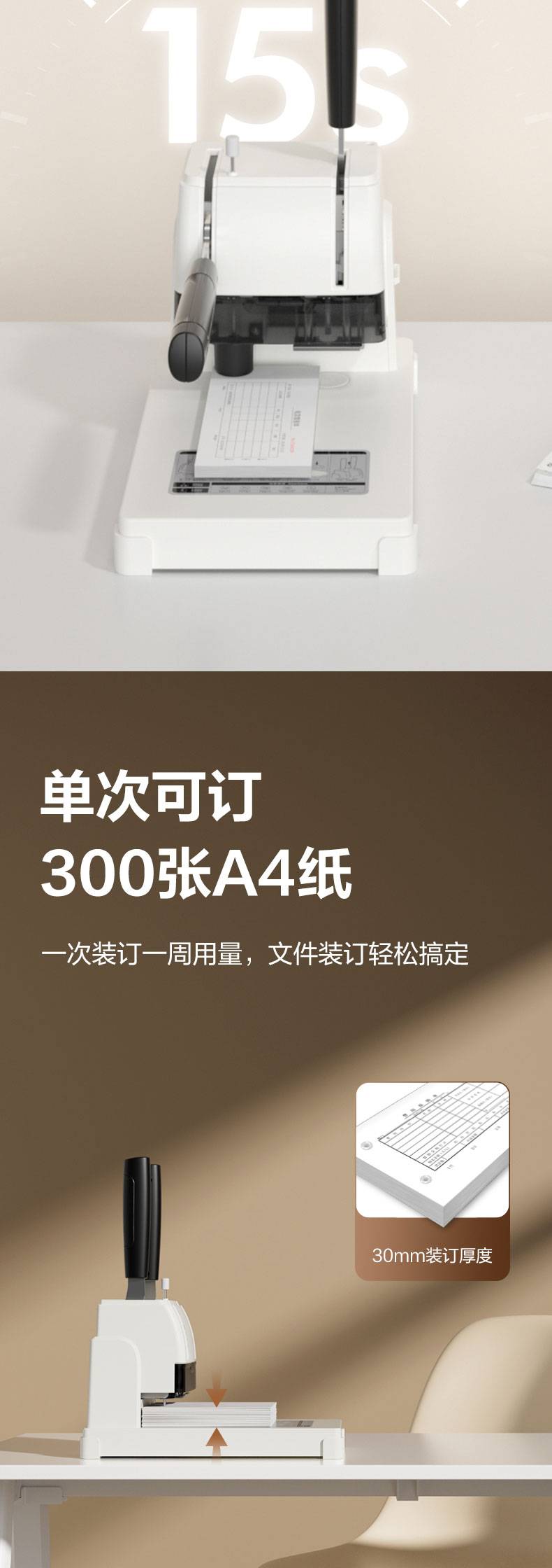 得力3888财务凭证装订机(浅灰) 可装30mm 孔径5mm 306*186*355mm