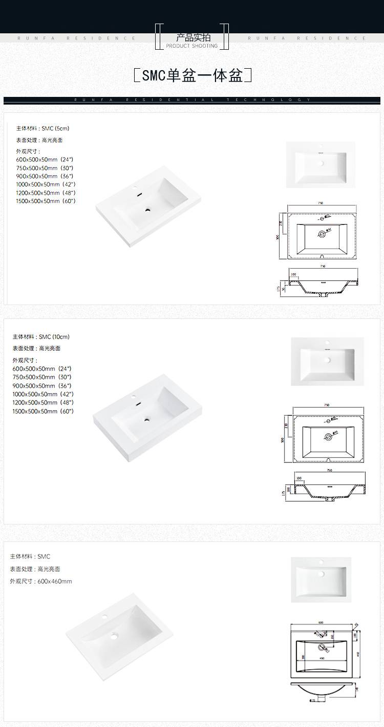 养老机构 抗冲击耐用性强 多功能台上台下通用 P型洗脸盆 润发