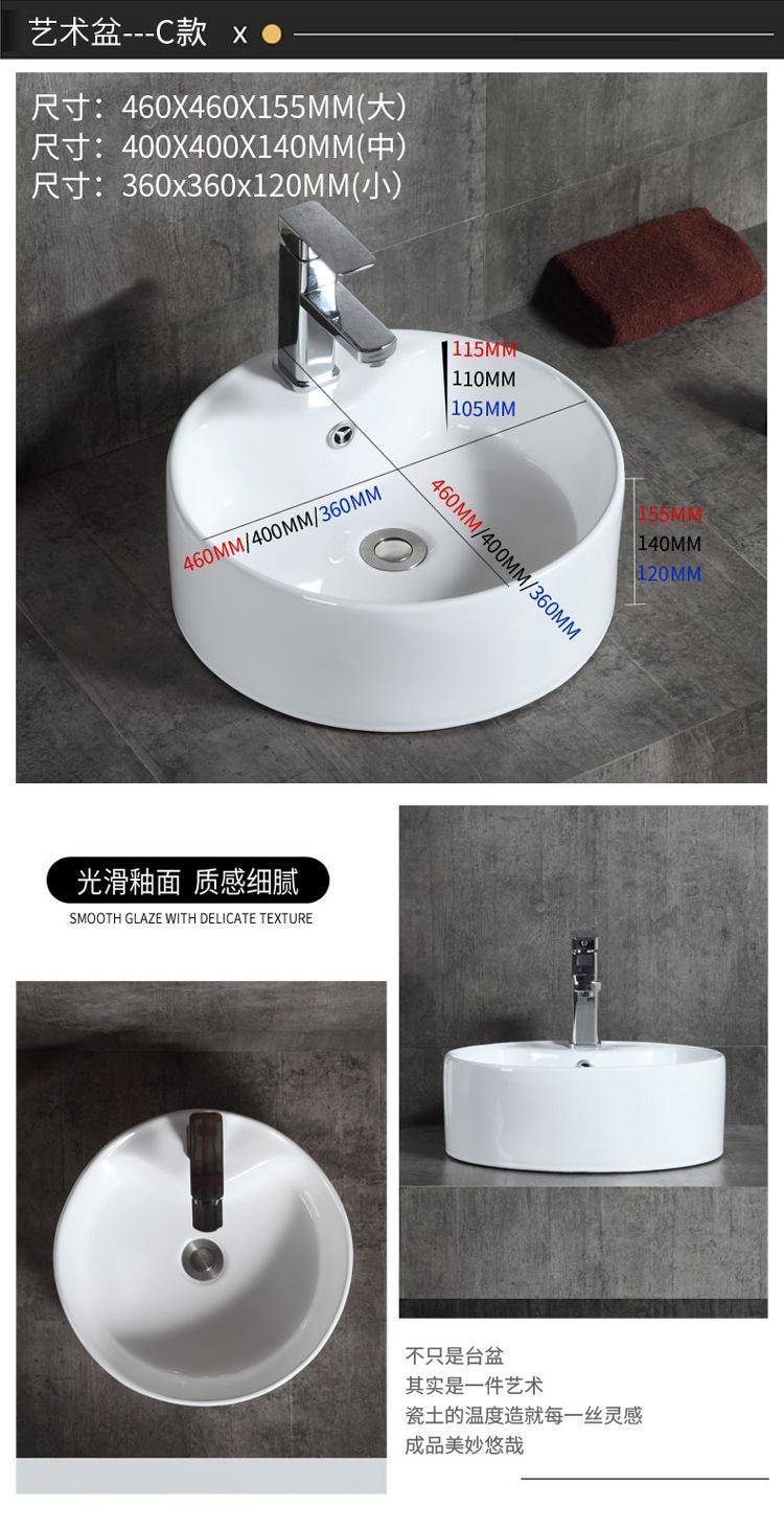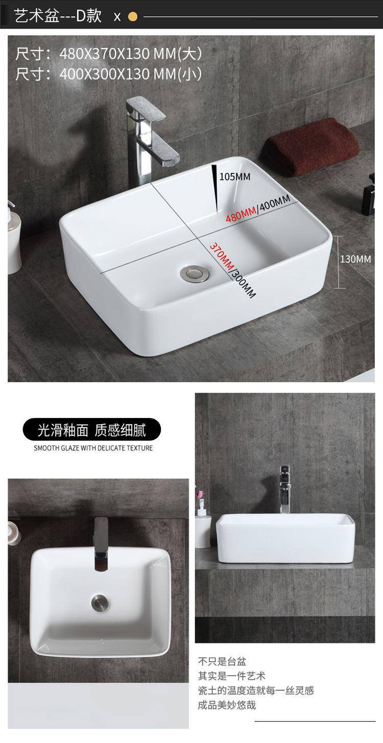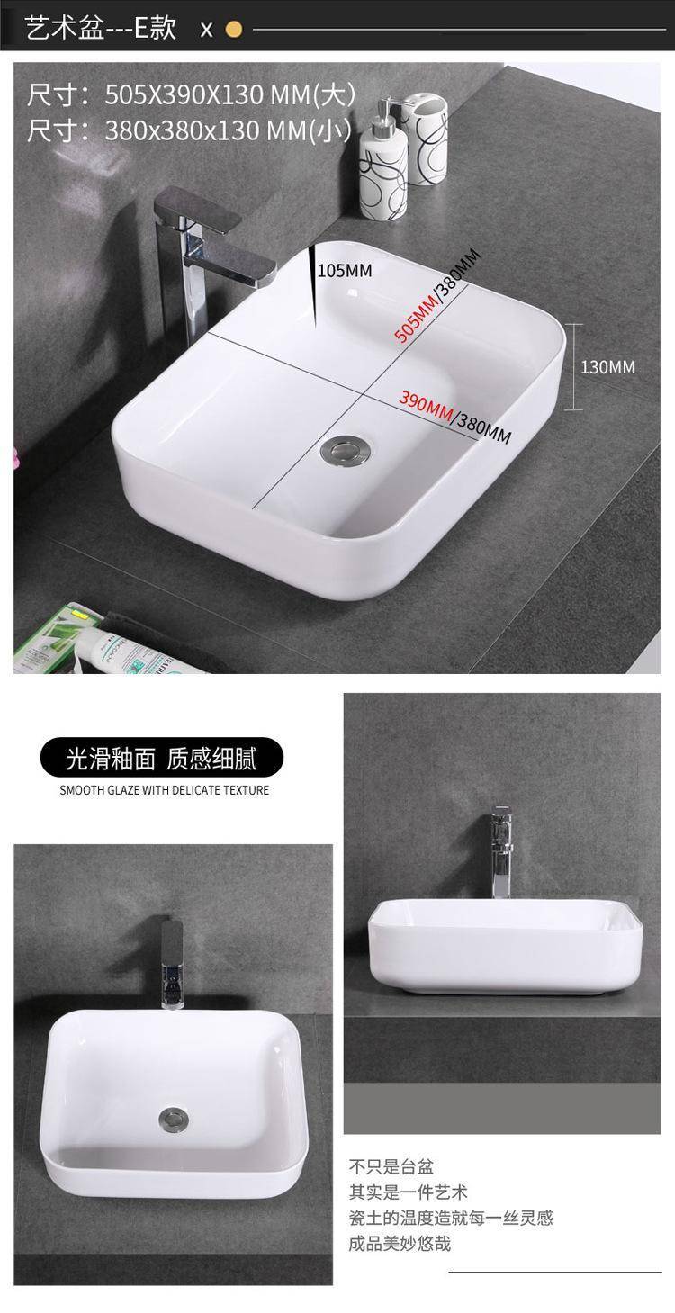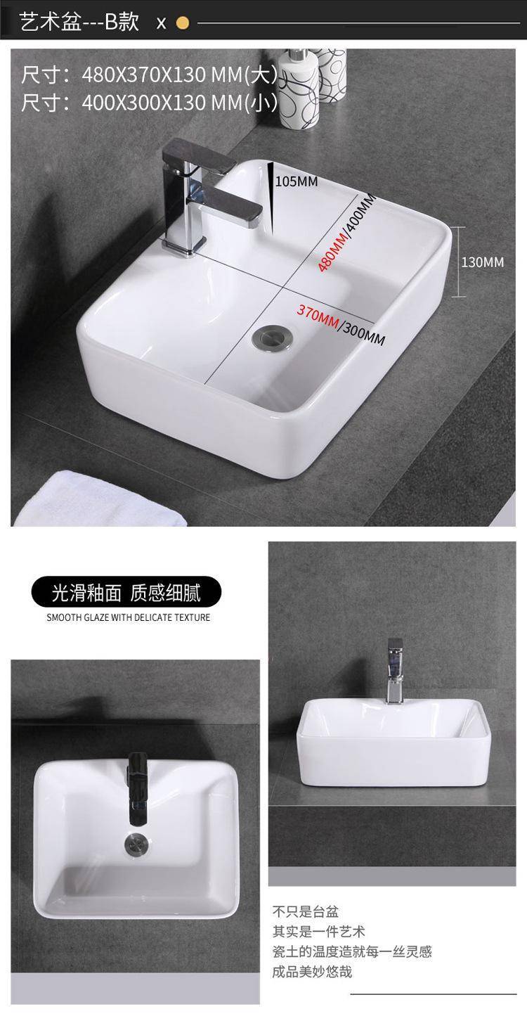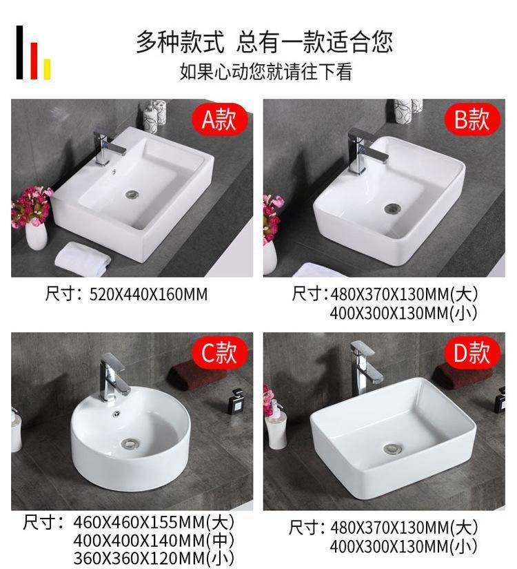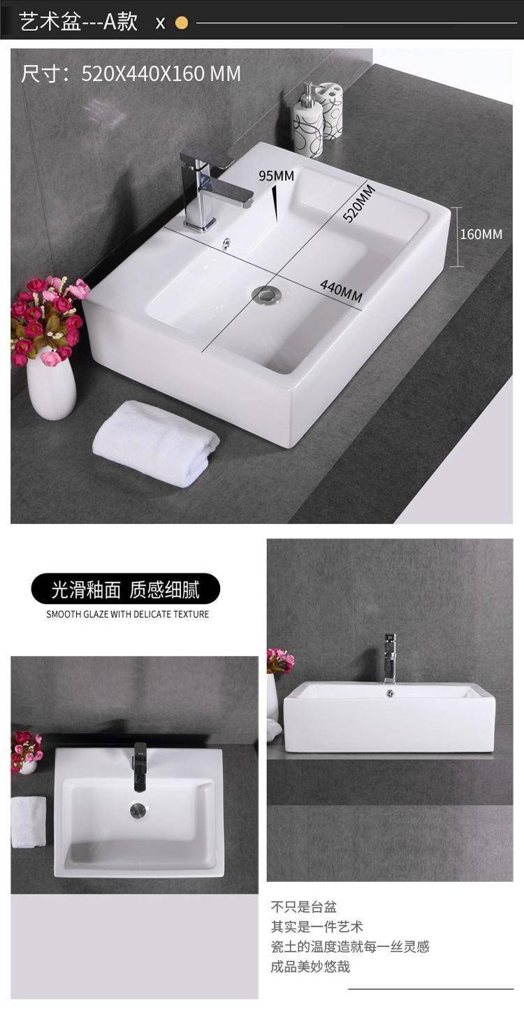 箭᷂牌单孔台上盆家用陶瓷洗脸盆卫生间洗手盆圆形长正方形洗面盆