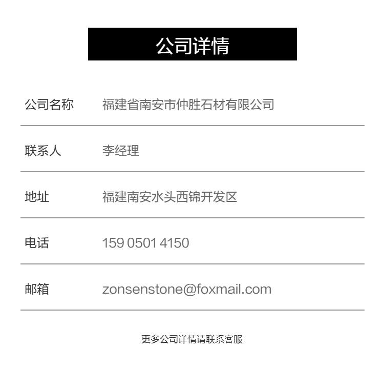 石材价格与厚度、规格尺寸、数量以及质量等有关系,网上无法准确报价,网店报价仅为方便客户自助索样,并非实际售价,如需询价索样请直接来电:159 0501 4150