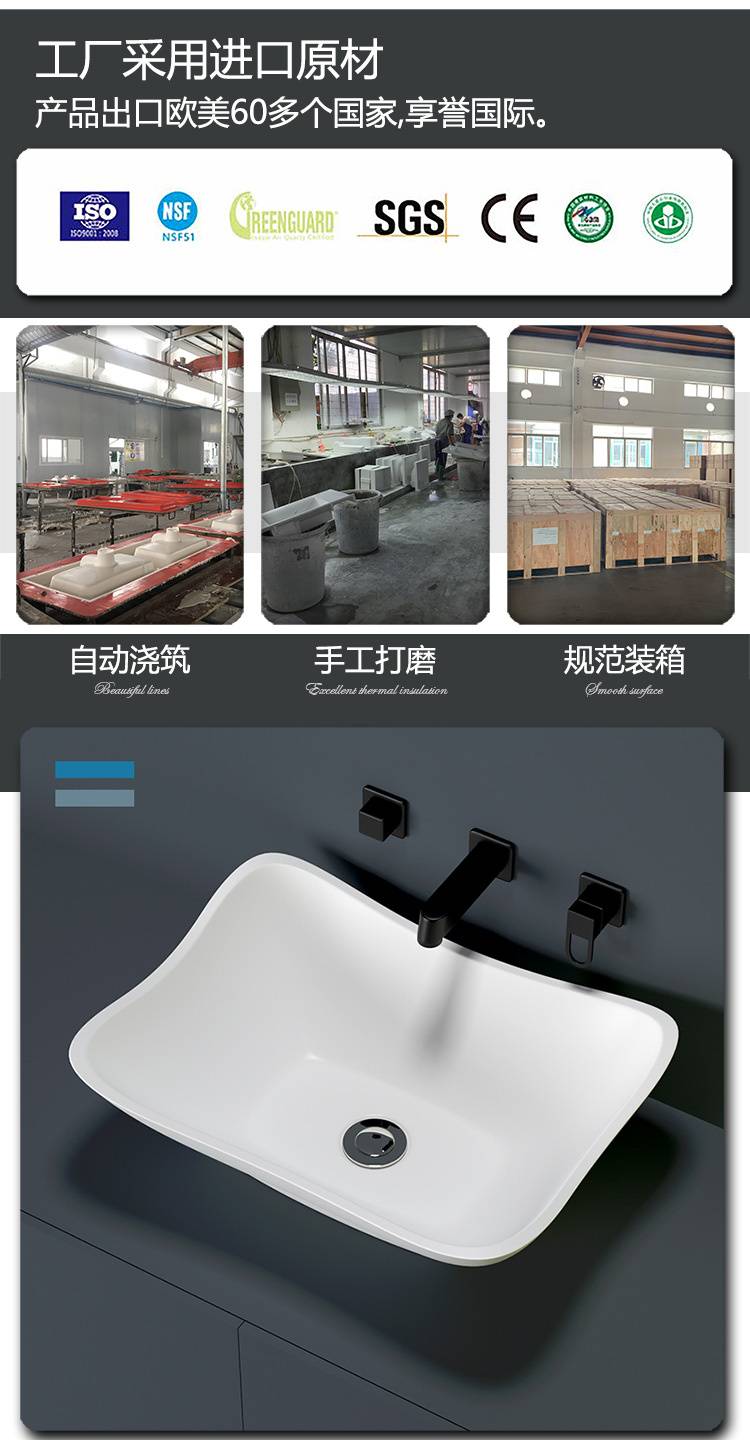 现代酒店卫浴洗手台 轻奢民宿人造石台上盆 科曼厂家