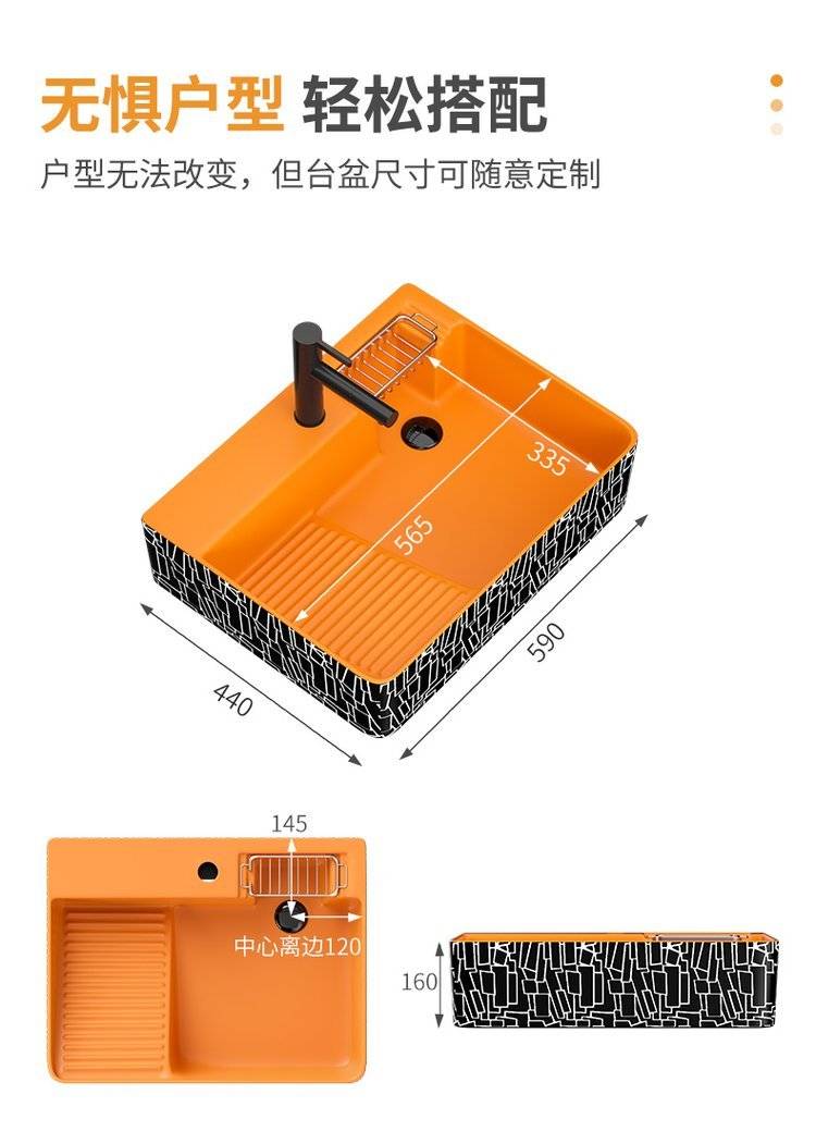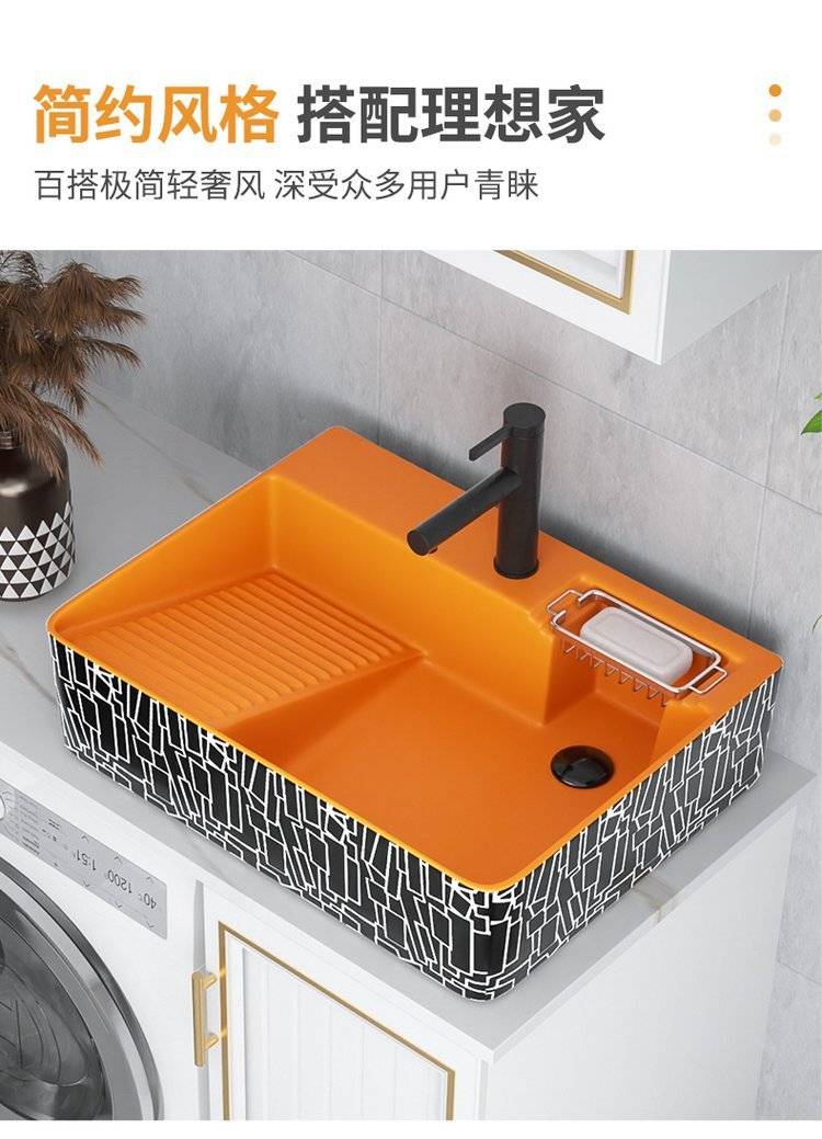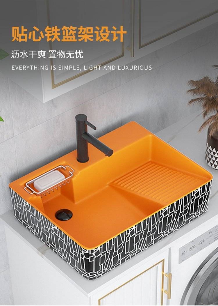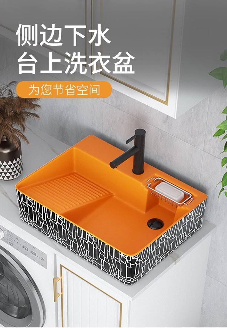 台上盆侧边下水台上洗衣盆带搓衣板侧排水台盆陶瓷阳台洗手盆单盆