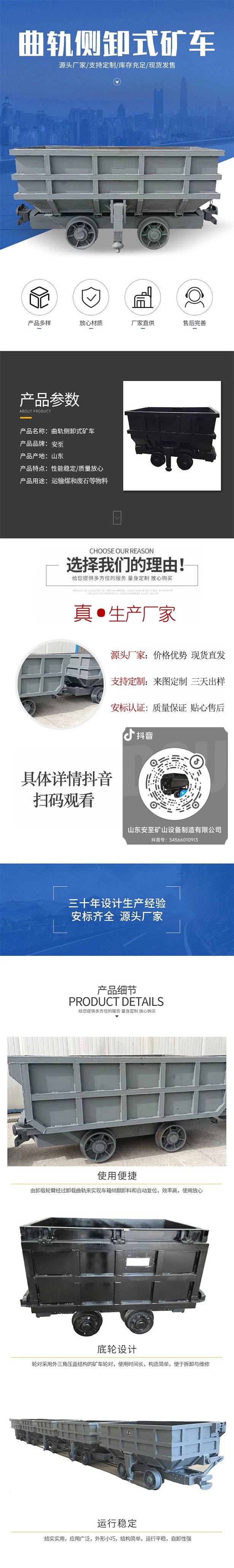 3.5立方单侧曲轨侧卸式矿车 JCC3.5-6 斜井金属矿山出渣侧翻自卸车