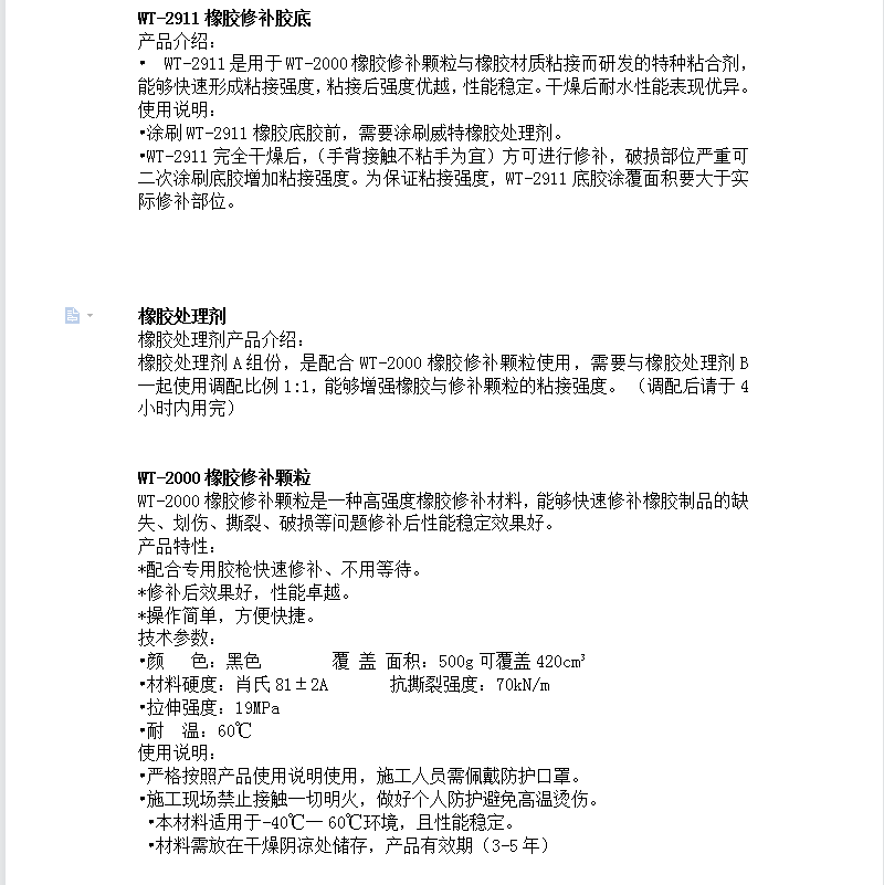 橡胶处理剂 配合修补颗粒使用 粘接强度高 操作简单