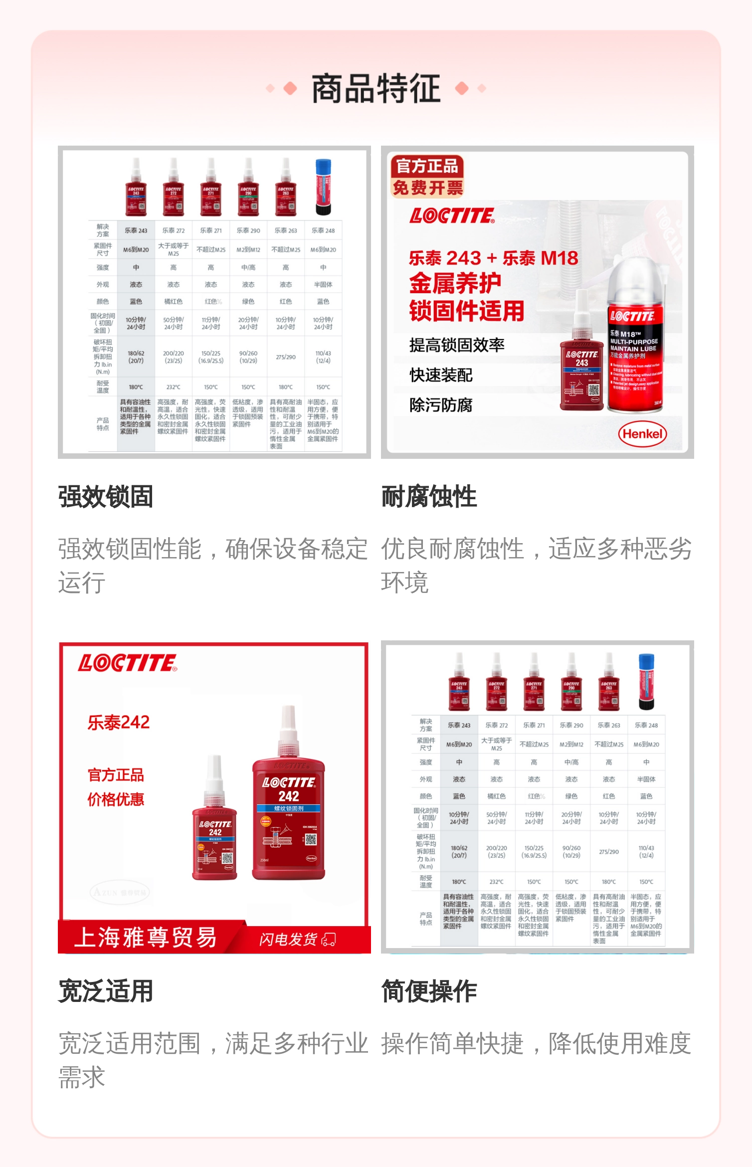 汉高乐泰243胶水 50ml蓝色螺纹锁固剂 配合SF7649,7387,m18