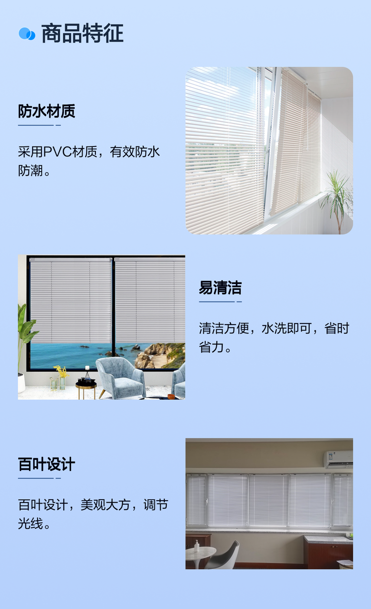 防水PVC百叶窗帘 便捷清洁 可水洗设计 家居优选