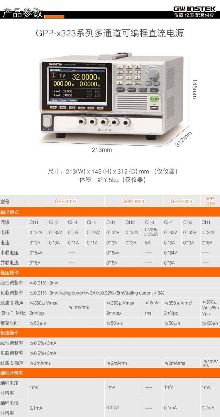 GWINSTEK固纬GPE-4323C多路线性直流稳压电源3323C 2323C 1326C