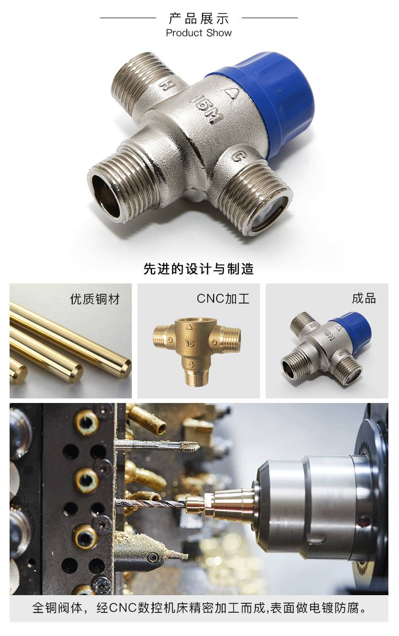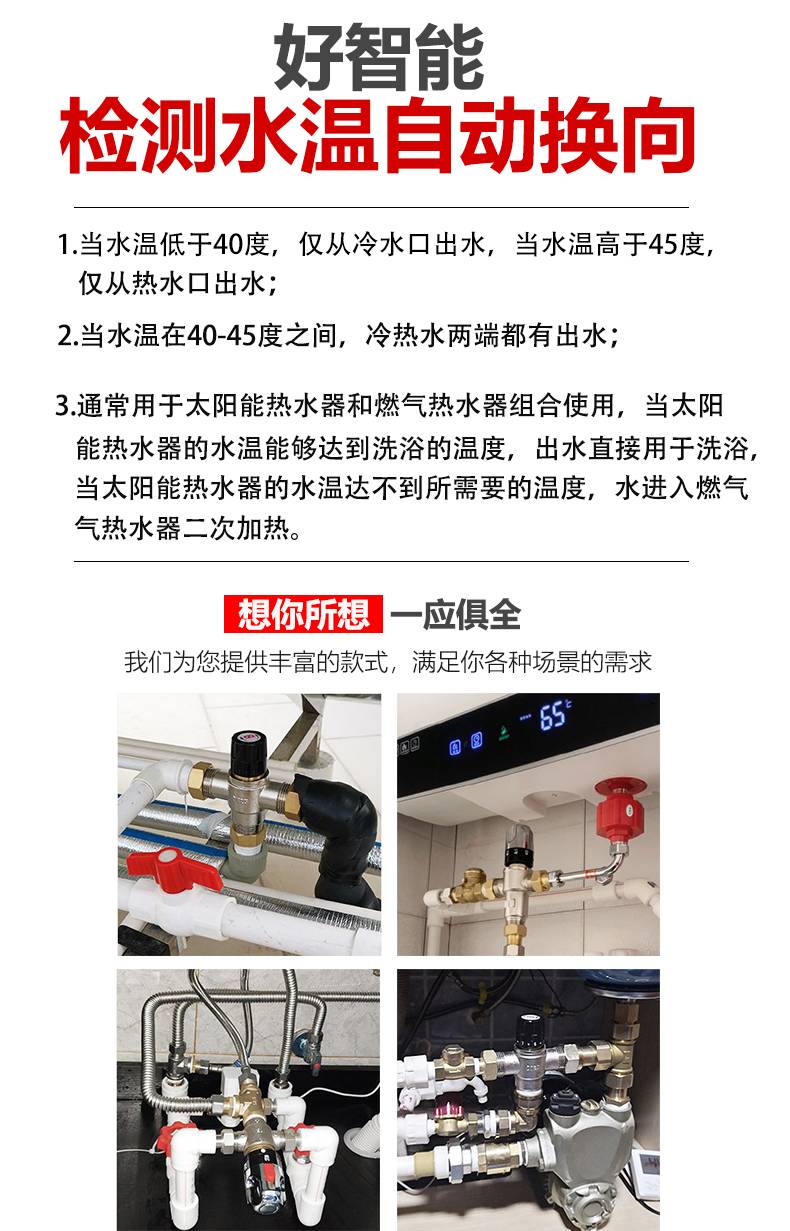 太阳能专用混水冷热阀智能淋浴龙头控温阀恒温混水阀