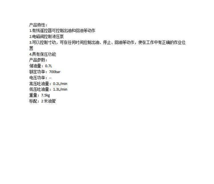 ESP-700电池液压泵 KORT 储油量:0.7L 额定功率:700bar