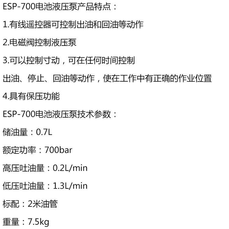 电力施工ESP-700电池泵多用途锂电液压泵700bar数字显示控制泵