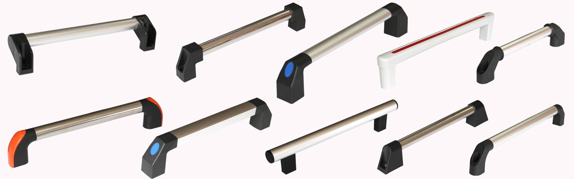 鑫华泽 工厂定制铝合金圆形管状拉手 带尼龙支撑座加强型机床门把手