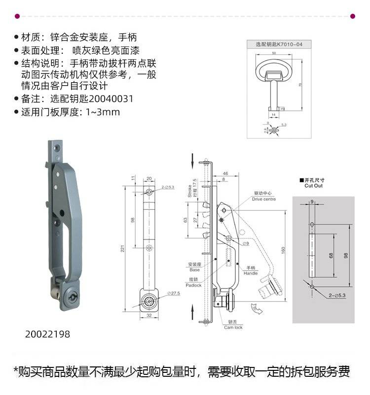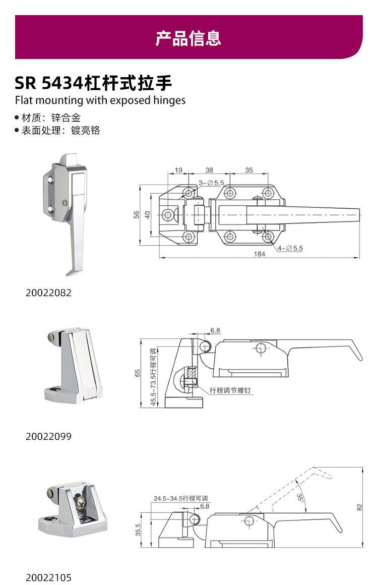 ESSENTRA益升华 杠杆货柜车用把手 拉动式柜门拉手 SR 5434杠杆式拉手