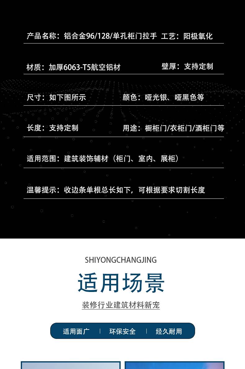 铝合金 合金拉手 单孔 96孔 128孔黑色柜门小拉手 金色 银色 白色