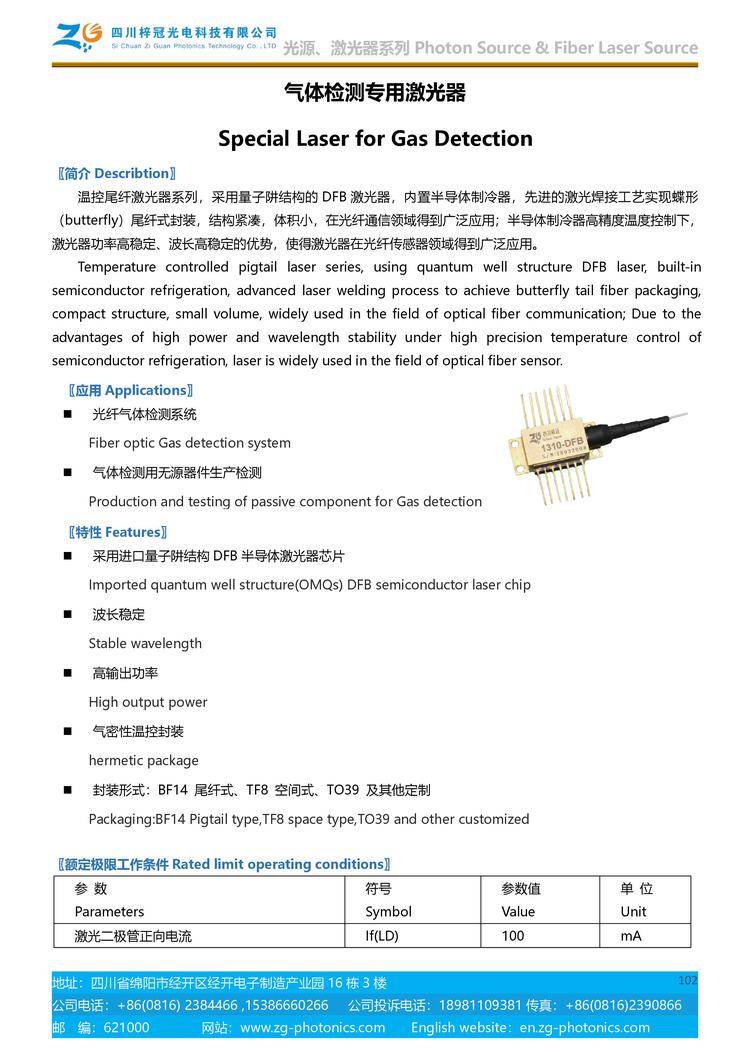 1567nmDFB激光器 波长可选 质量保证 CO检测 梓冠光电