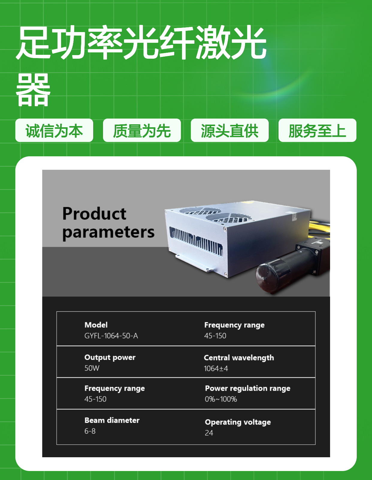 50W小尺寸足功率光纤激光器 高效稳定 性能卓越