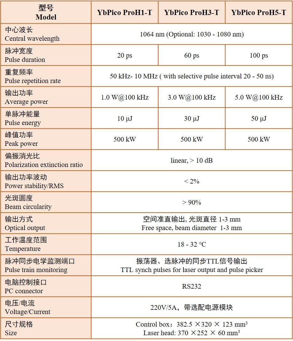 朗研光电皮秒激光器超短脉冲超快激光YbPico ProH1-T