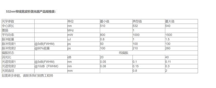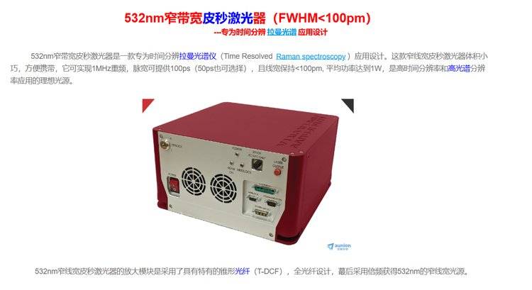 532nm窄带宽皮秒激光器 FWHM<100pm 专为时间分辨拉曼光谱应用设计