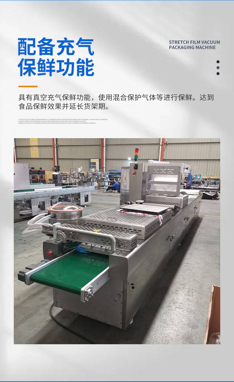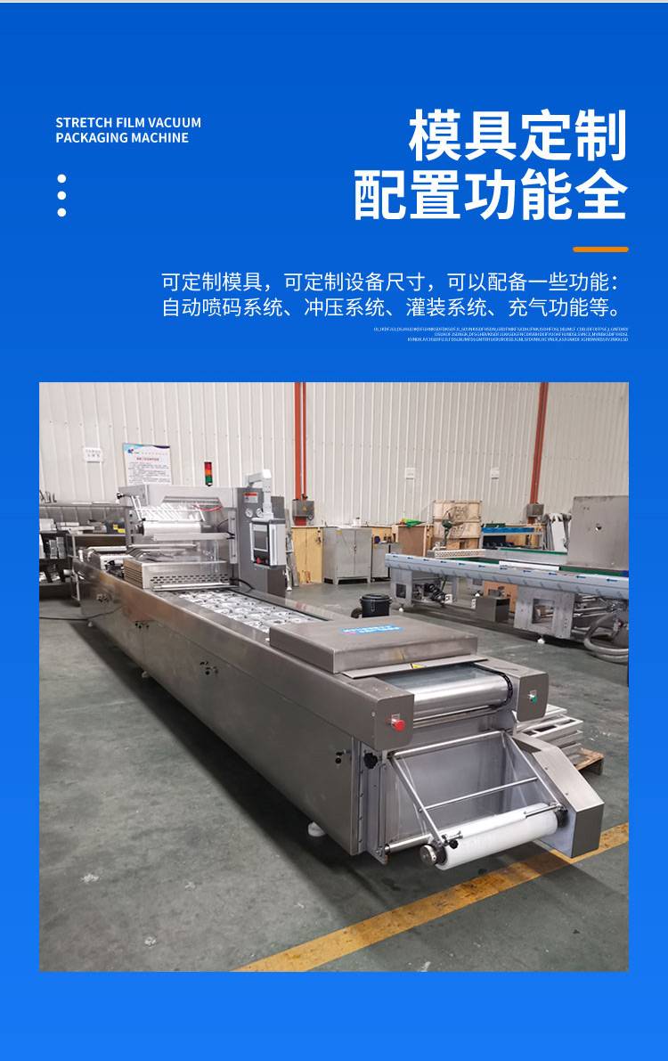 火山石烤肠全自动拉伸膜真空包装机 地道王肠连续式真空塑封机