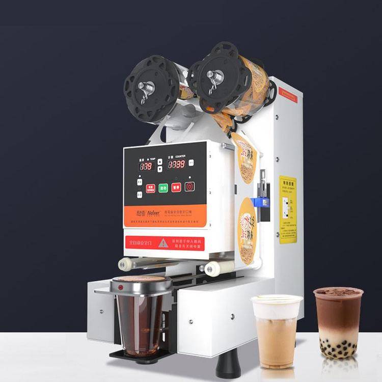 浩博奶茶封口机 95/98口径封杯机 全自动塑封机出售