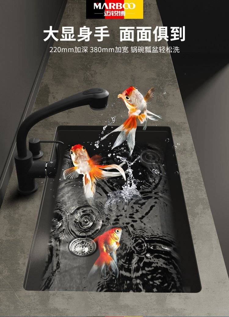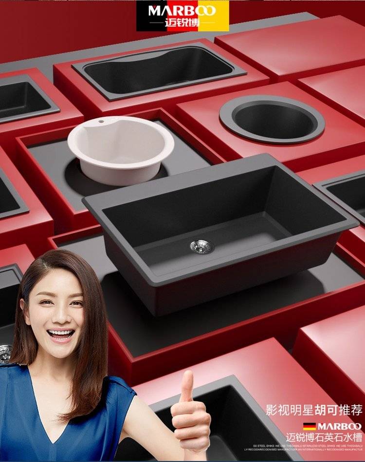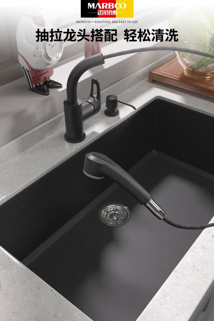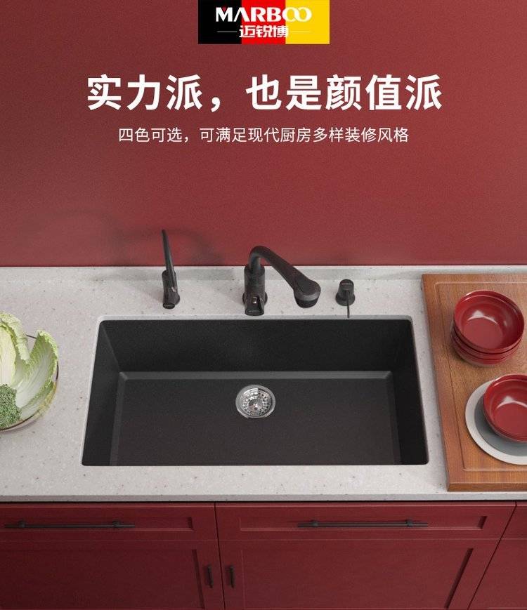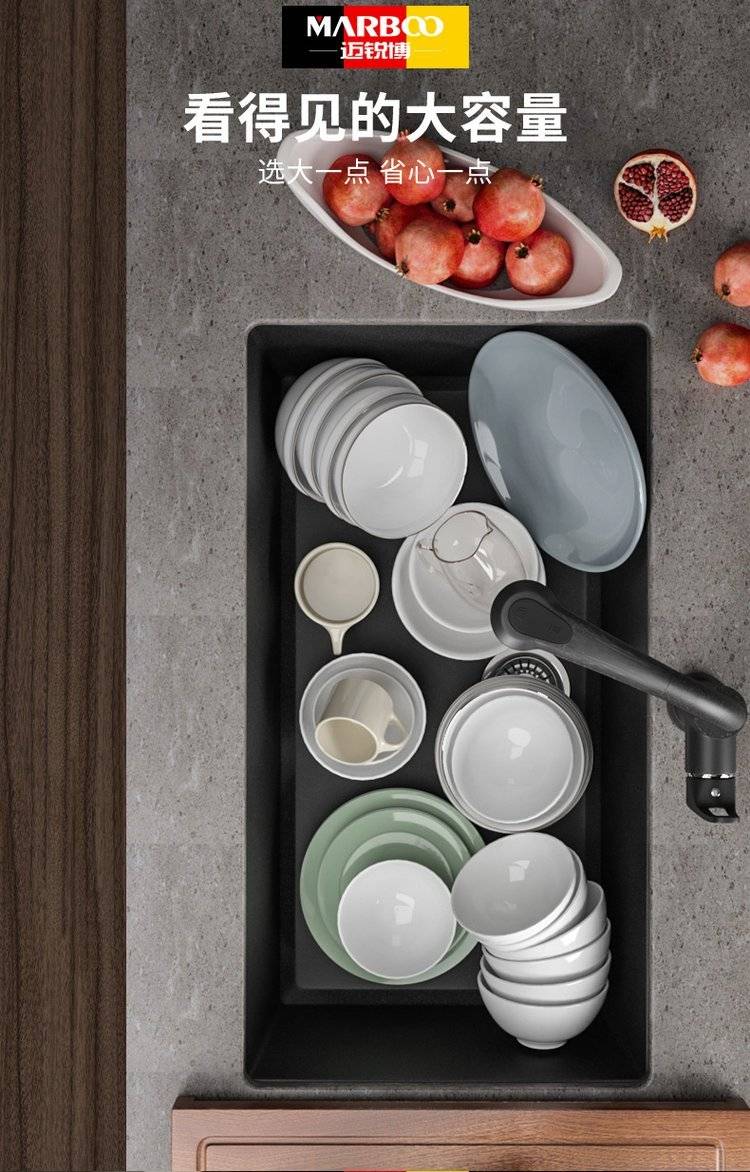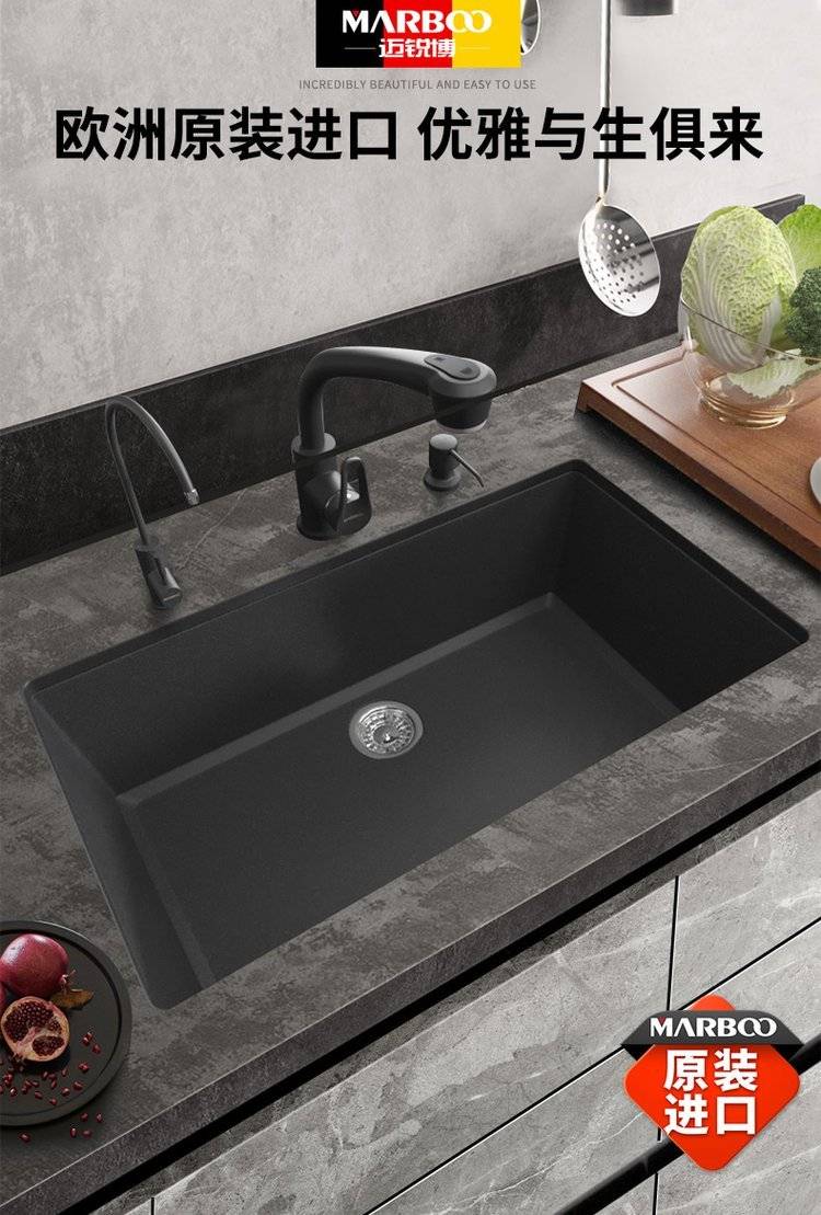 德国迈锐博石英石水槽大单槽台下盆厨房洗菜盆花岗岩水池菜盆932