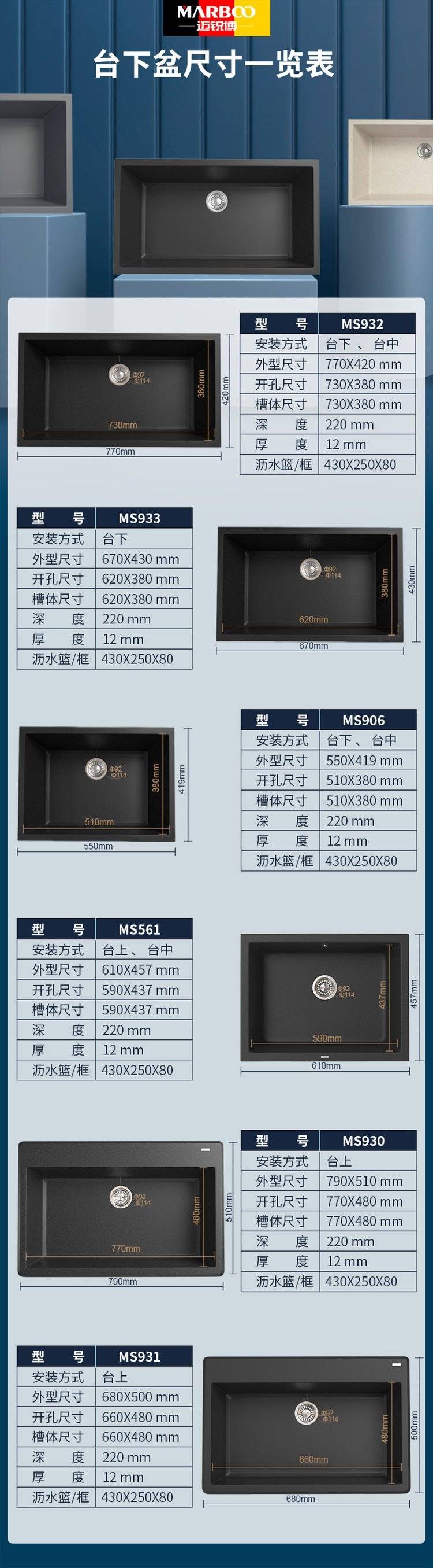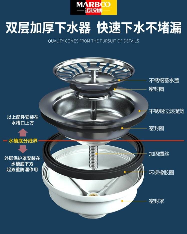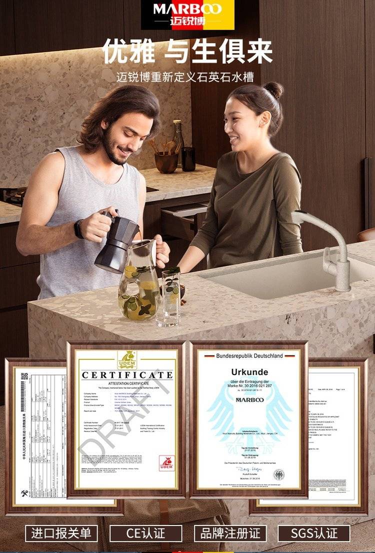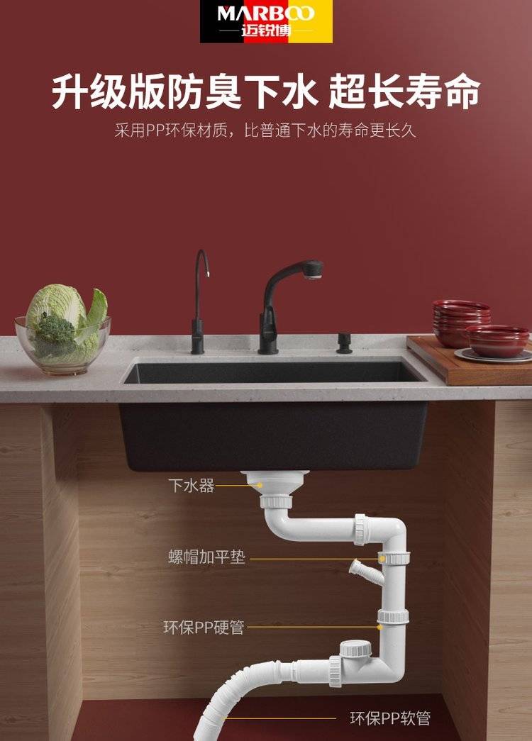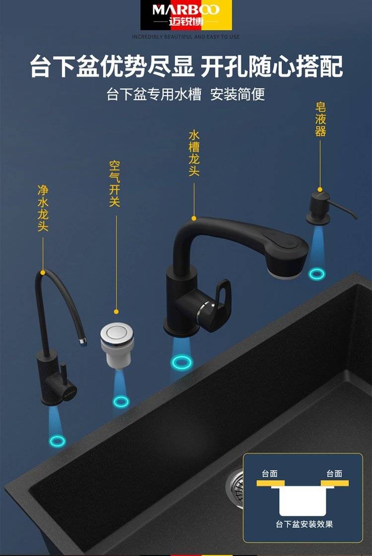 德国迈锐博石英石水槽大单槽台下盆厨房洗菜盆花岗岩水池菜盆932