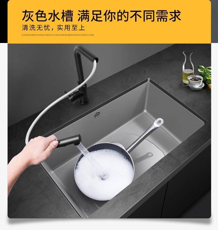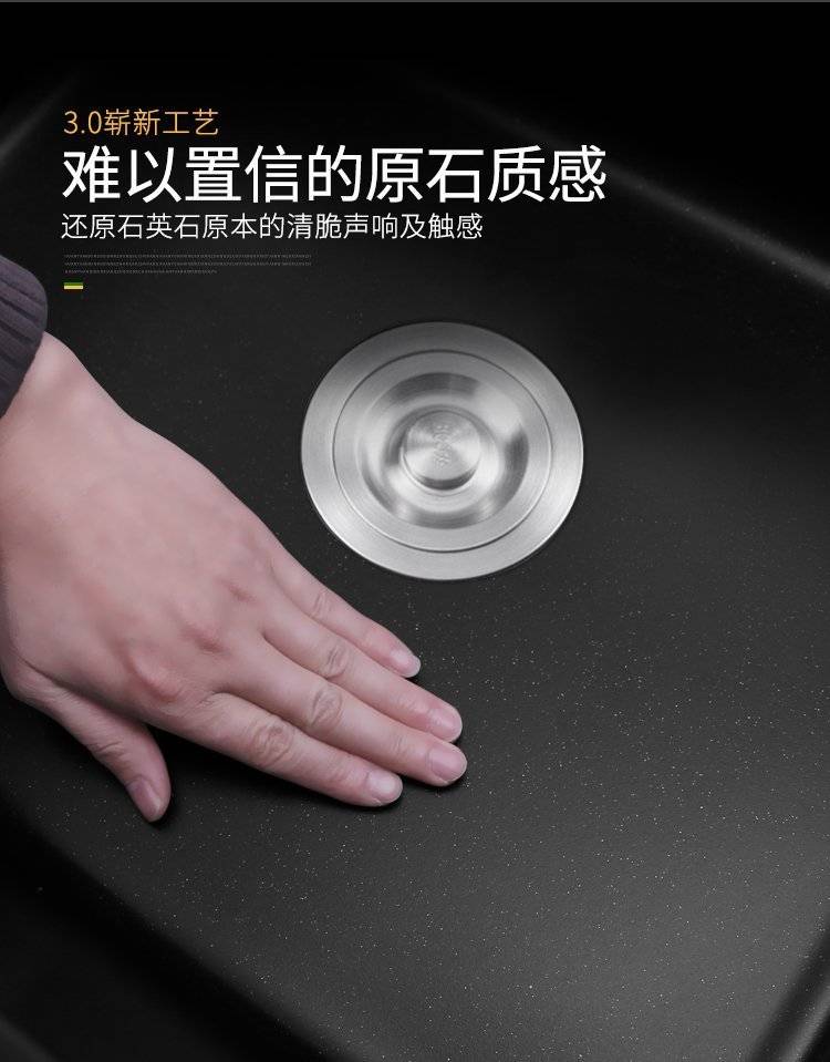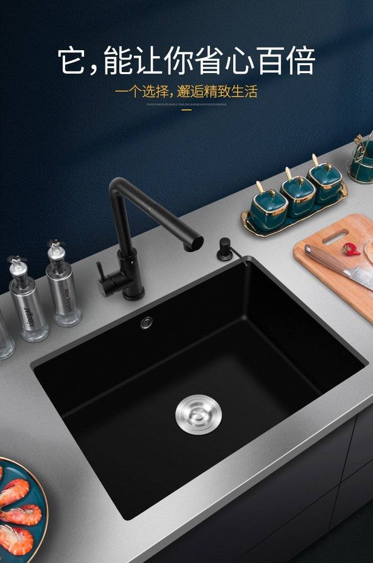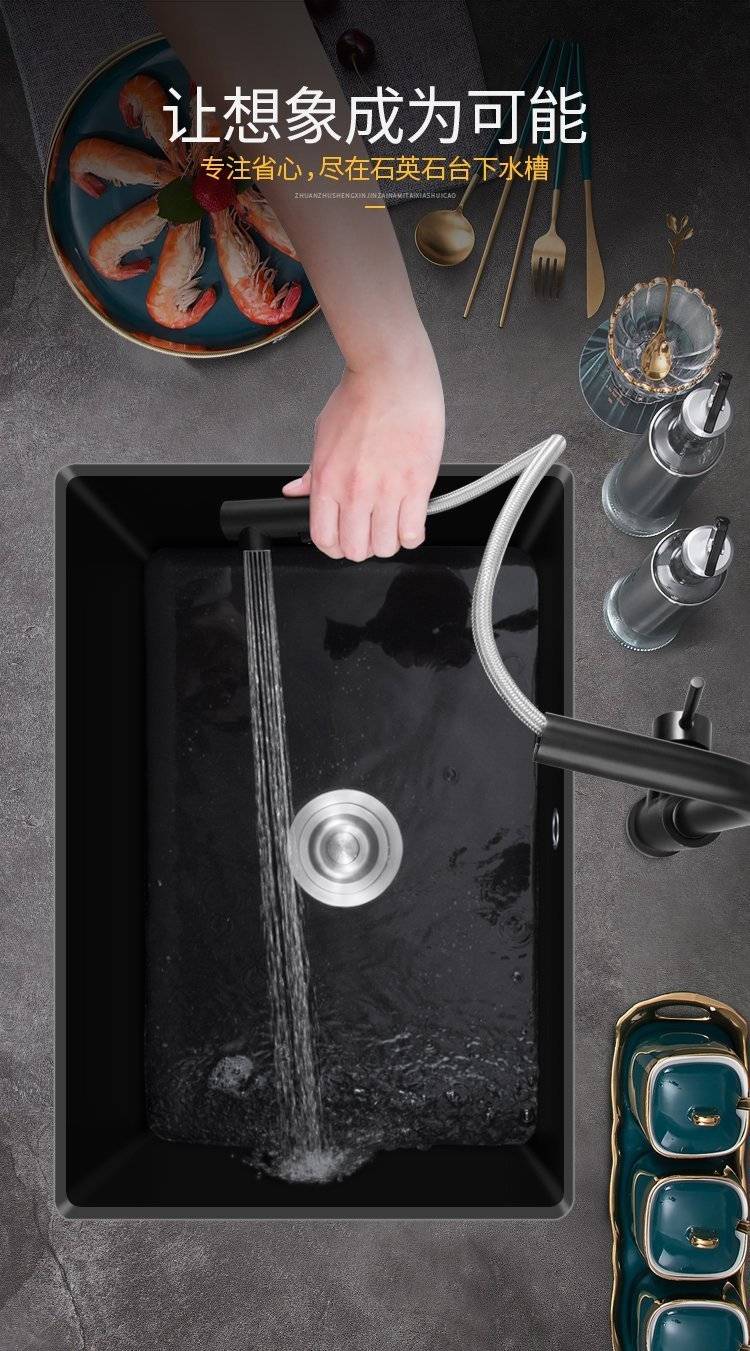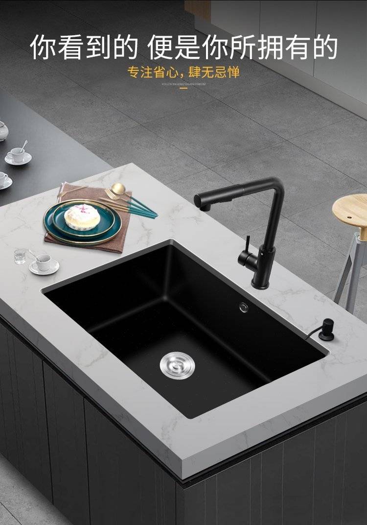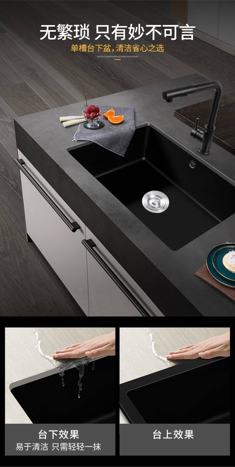 石英石水槽单槽套餐黑色花岗岩厨房洗菜盆嵌入式台下盆大手工