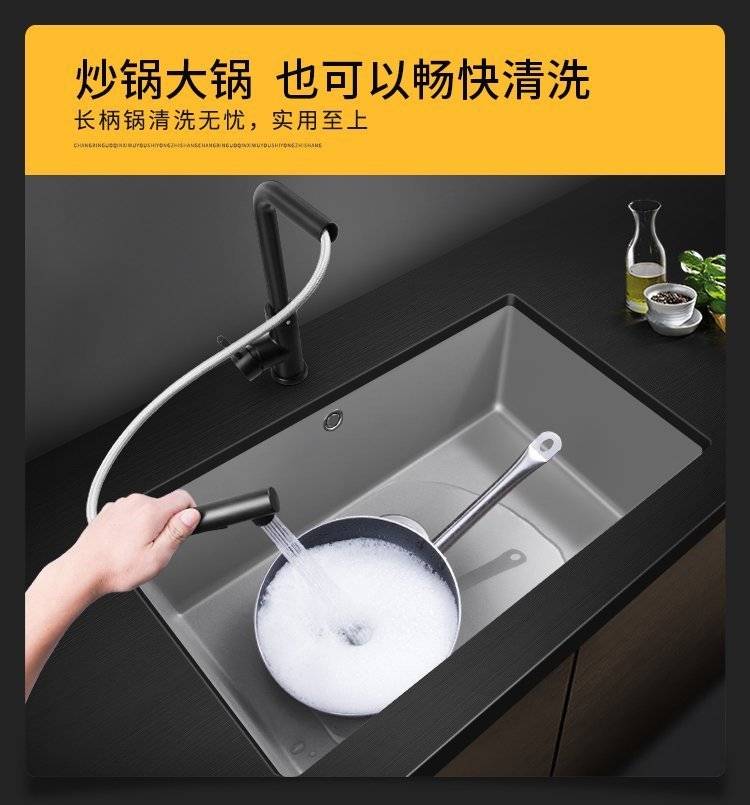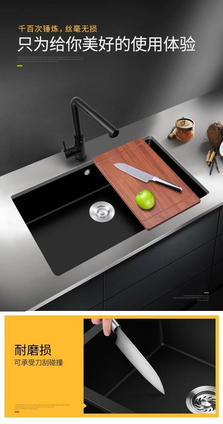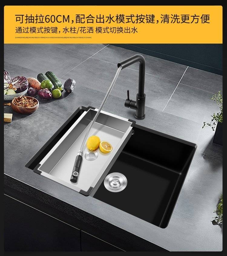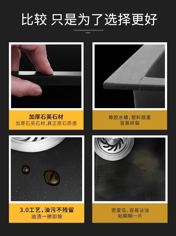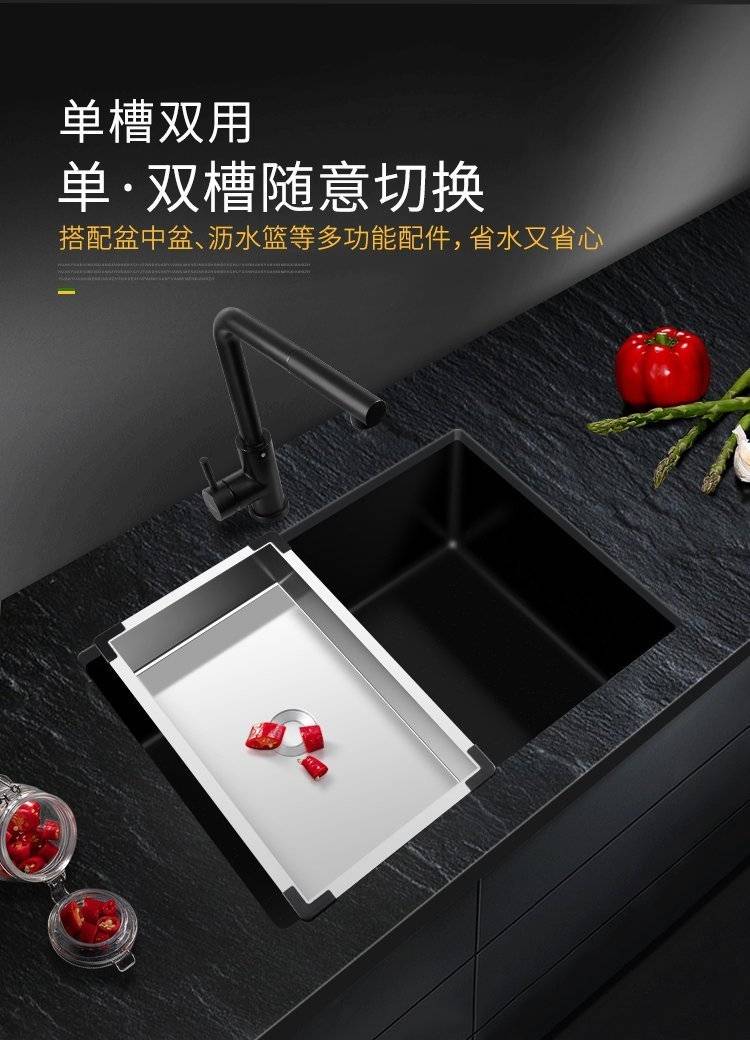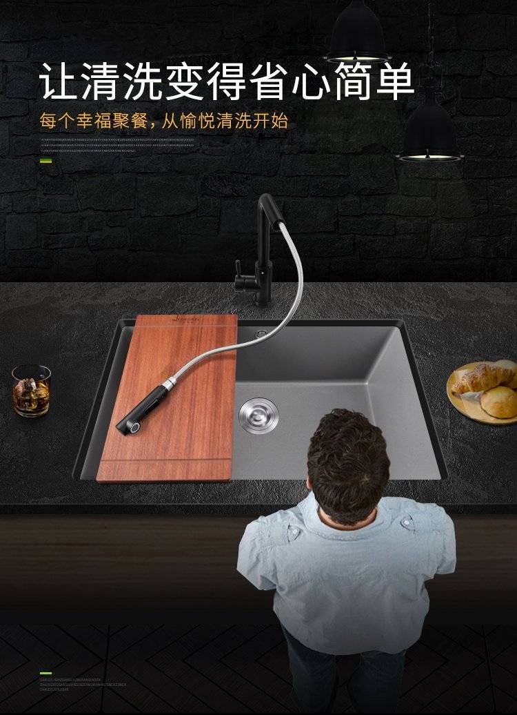 石英石水槽单槽套餐黑色花岗岩厨房洗菜盆嵌入式台下盆大手工