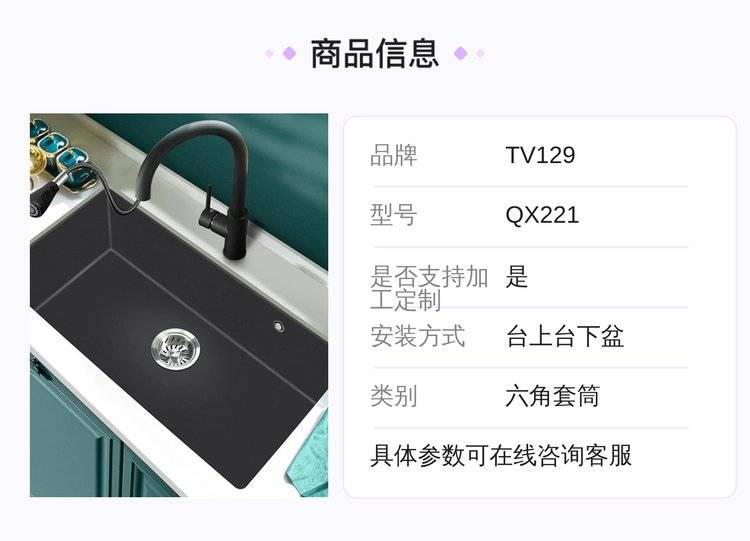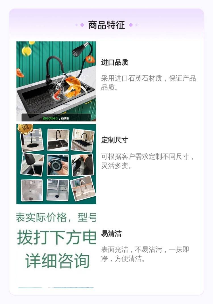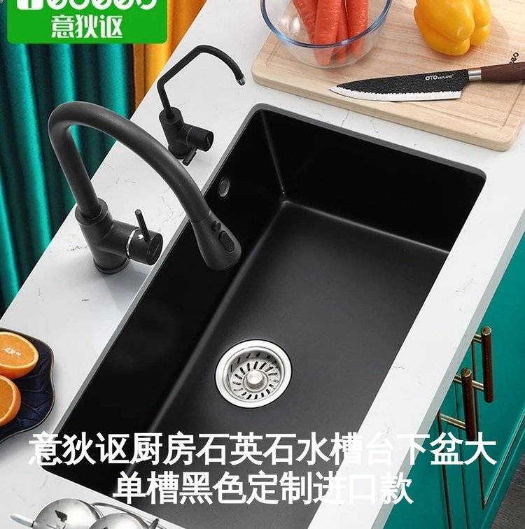 意狄讴厨房石英石水槽台下盆大单槽黑色定制进口款