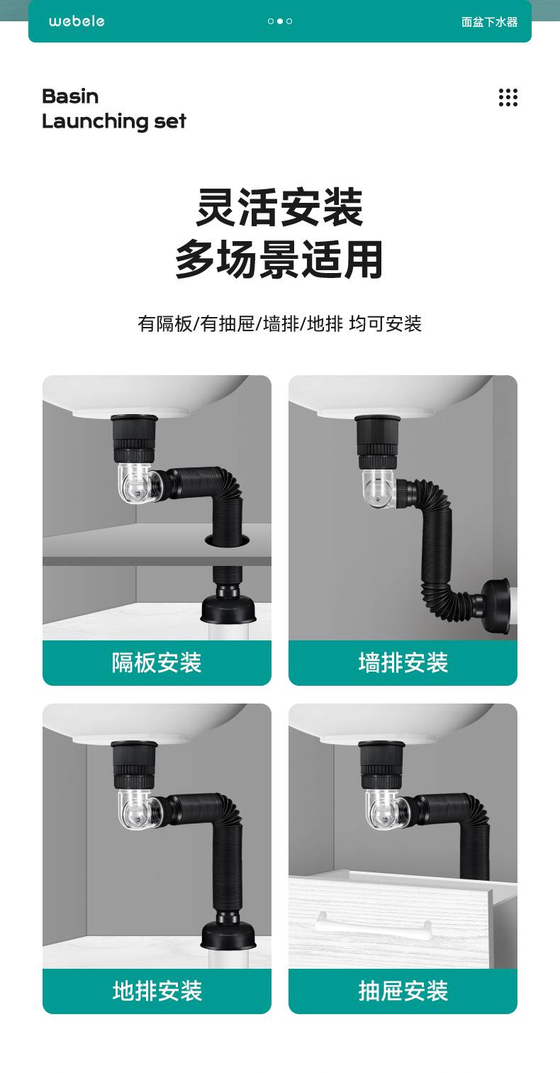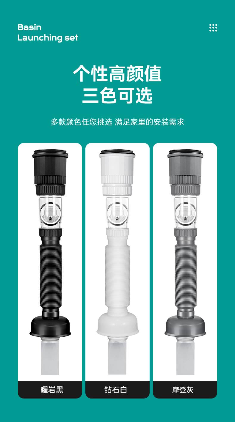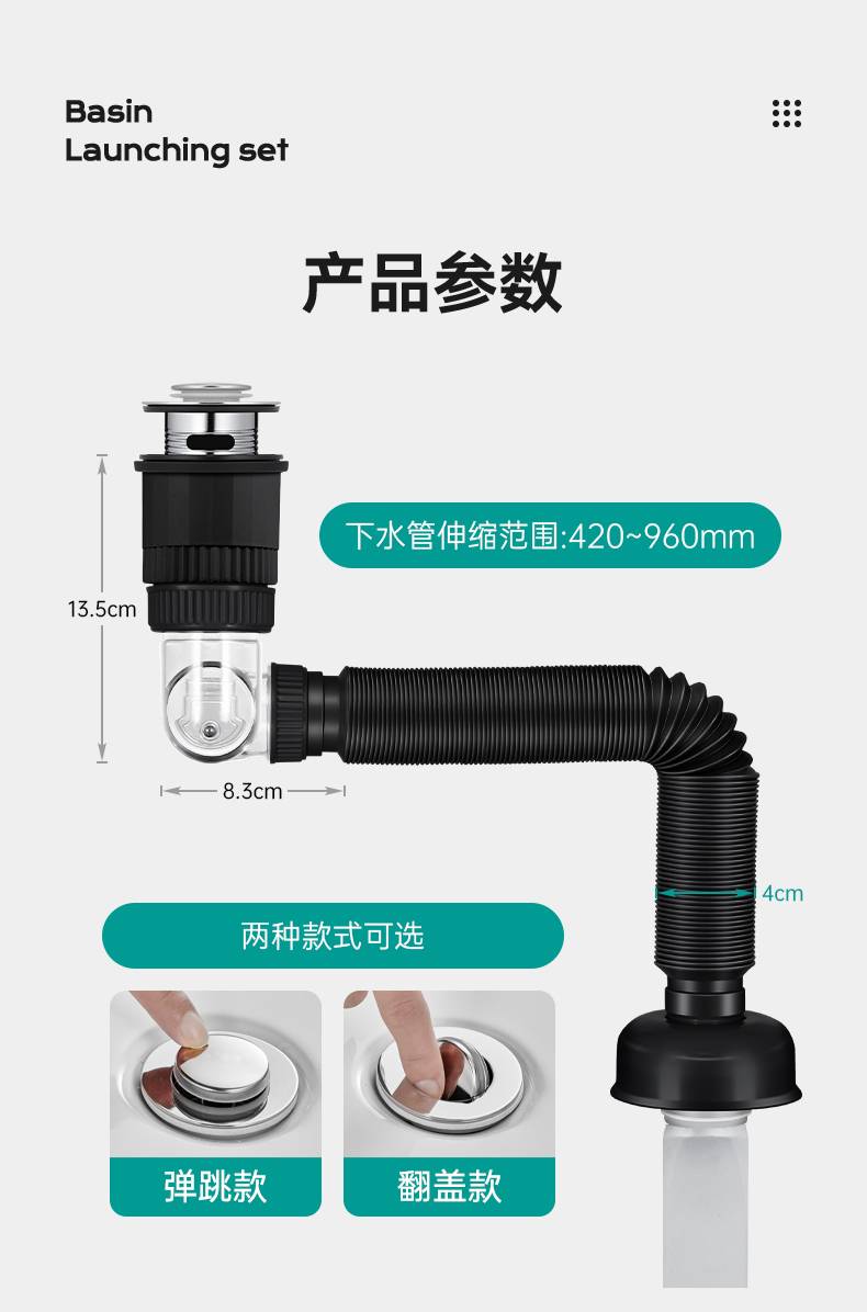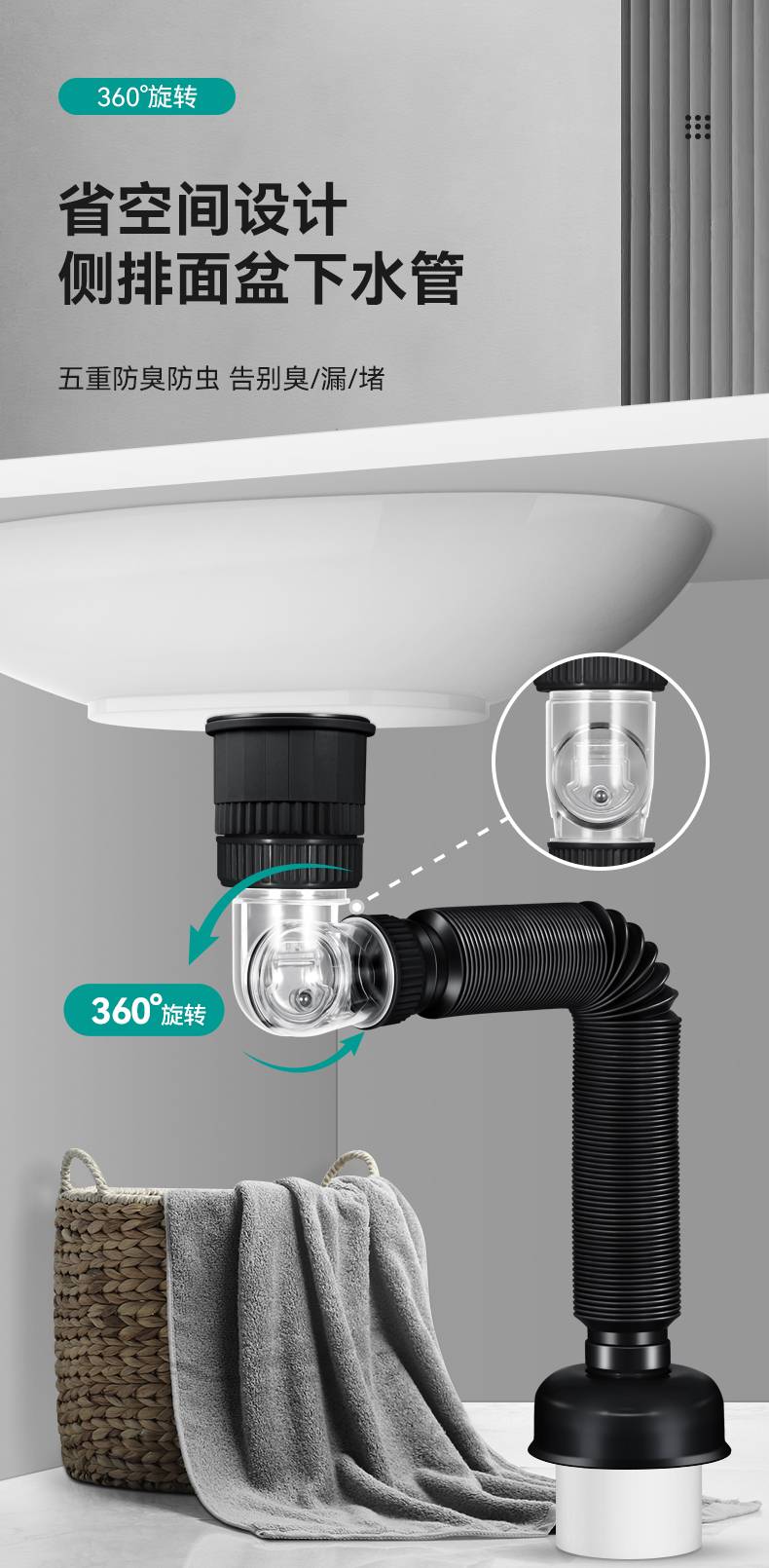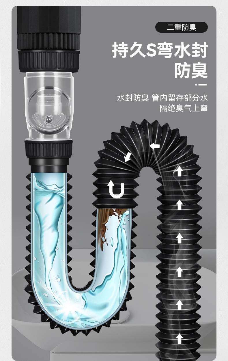 【黑色翻盖款】面盆防臭下水管●五重防臭 【黑色弹跳