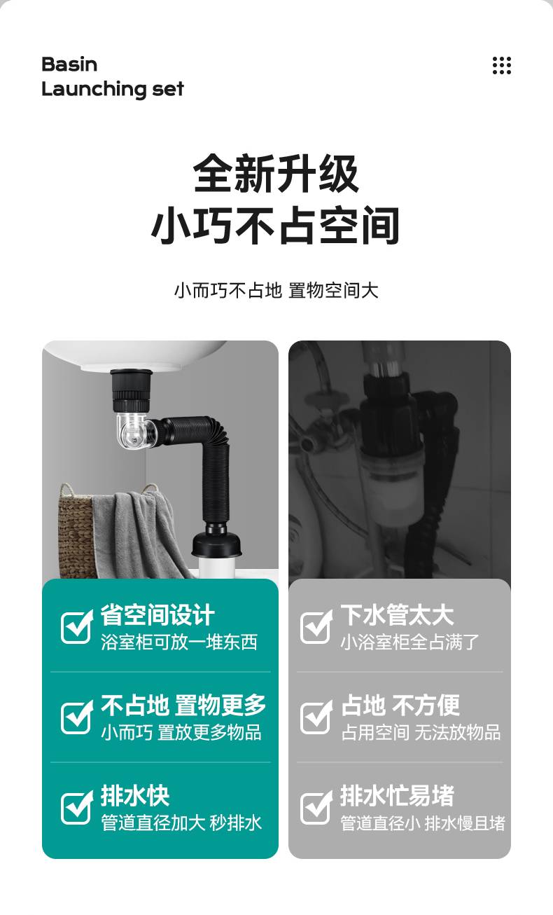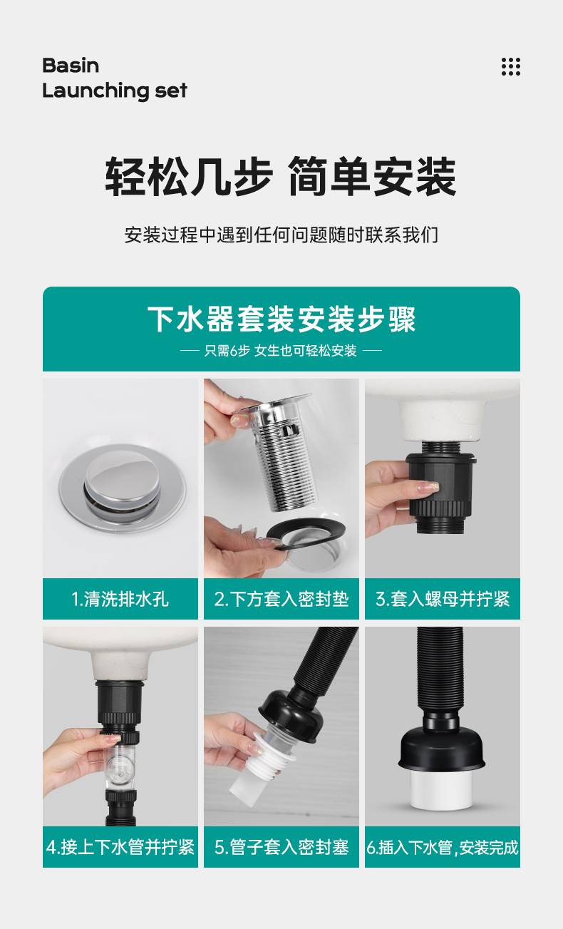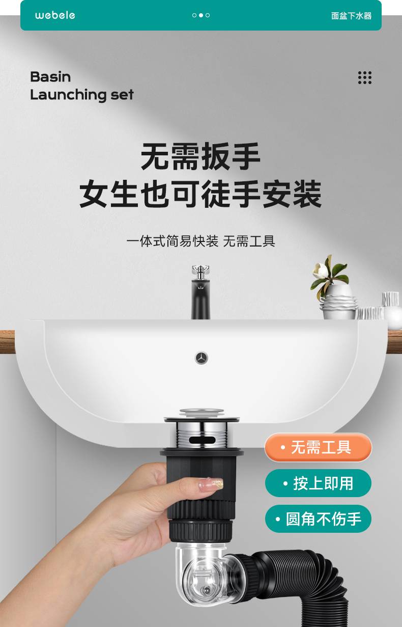 洗脸盆洗手盆下水管防返臭神器池台排水管面盆下水器配件漏水塞