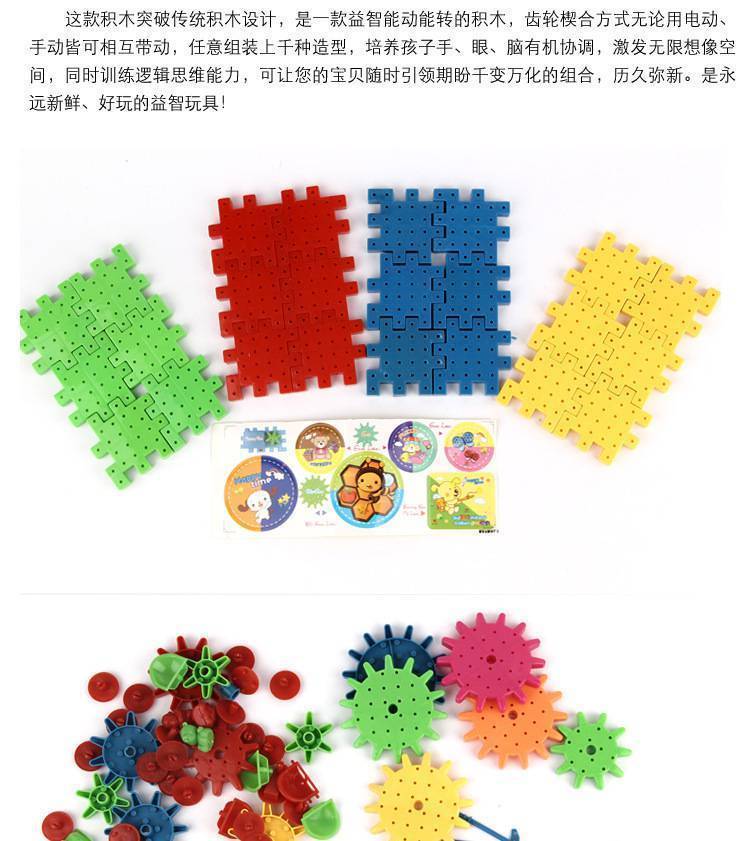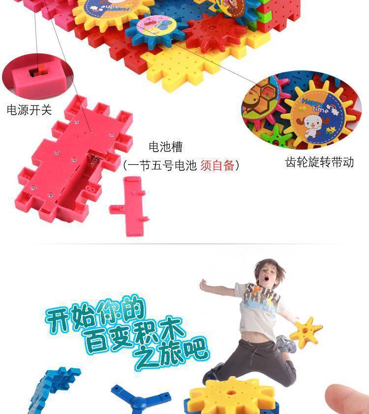 产品名称:电动百变积木品质量说明:材料制作而成,积木方块色彩漂亮,拼装部位边缘光滑,不会划伤小朋友,颜色漂亮富有光泽、反复拆装且较安全,是幼儿的玩具,产品无性味道.包装精美.加上可爱的卡通图案,肯定会令你爱不释