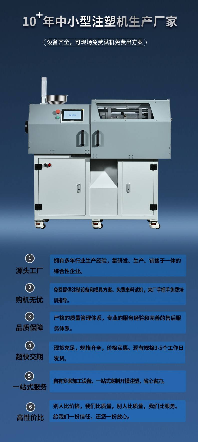 适用于生产小型精密部件、电子产品、仪器、玩具及医疗器材等各种热塑性塑料