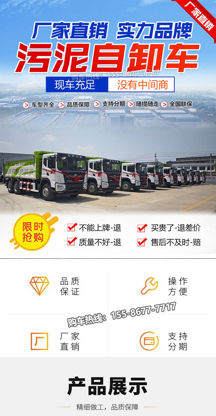 东风华神7米四轴污泥自卸车 城市淤泥清运用 厢体后翻倾卸液压控制