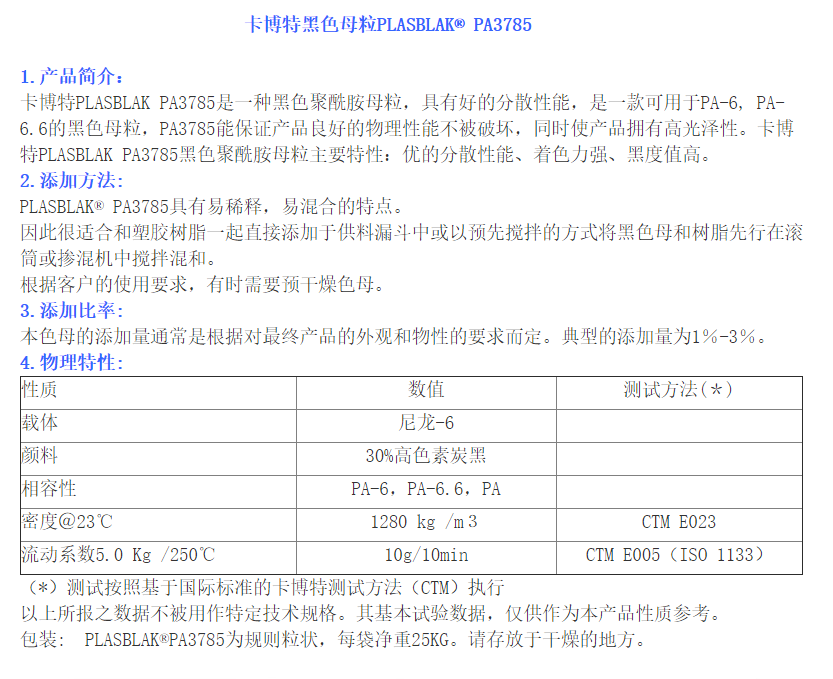 卡博特色母粒PA3785 注塑改性尼龙色母粒 高黑高光料尼龙专用色母