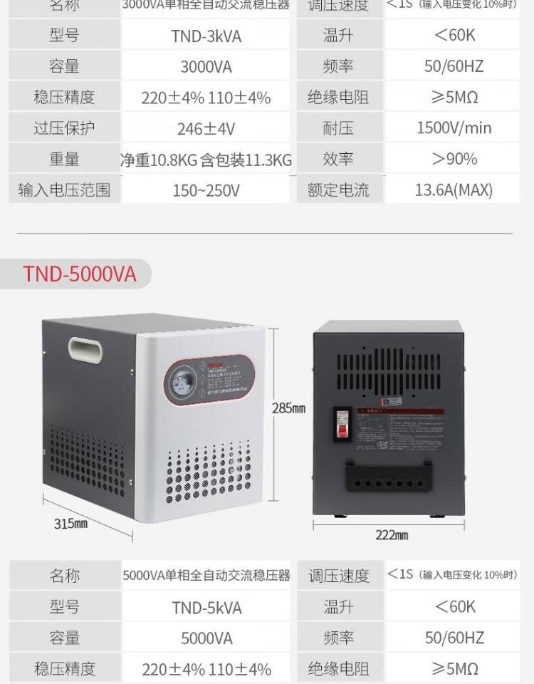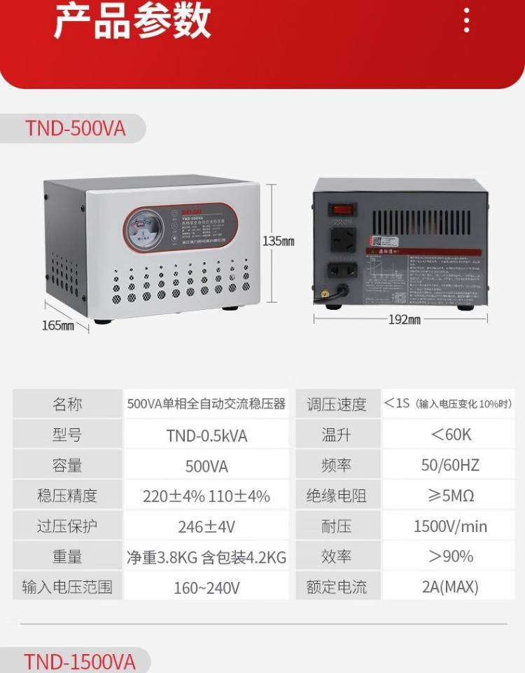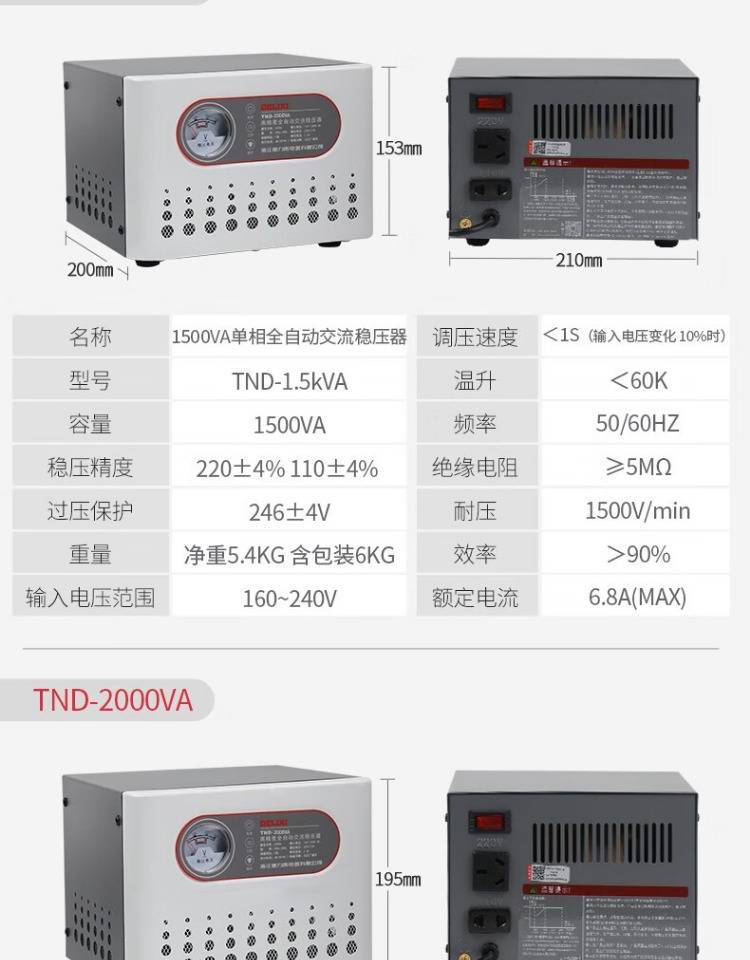 交流稳压电源厂家 德力西操作简单 稳定守护 tnd-500va