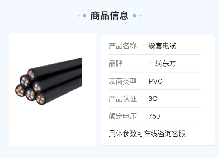 一缆东方PVC3C认证橡套电缆750V - 适用于工业设备电源线