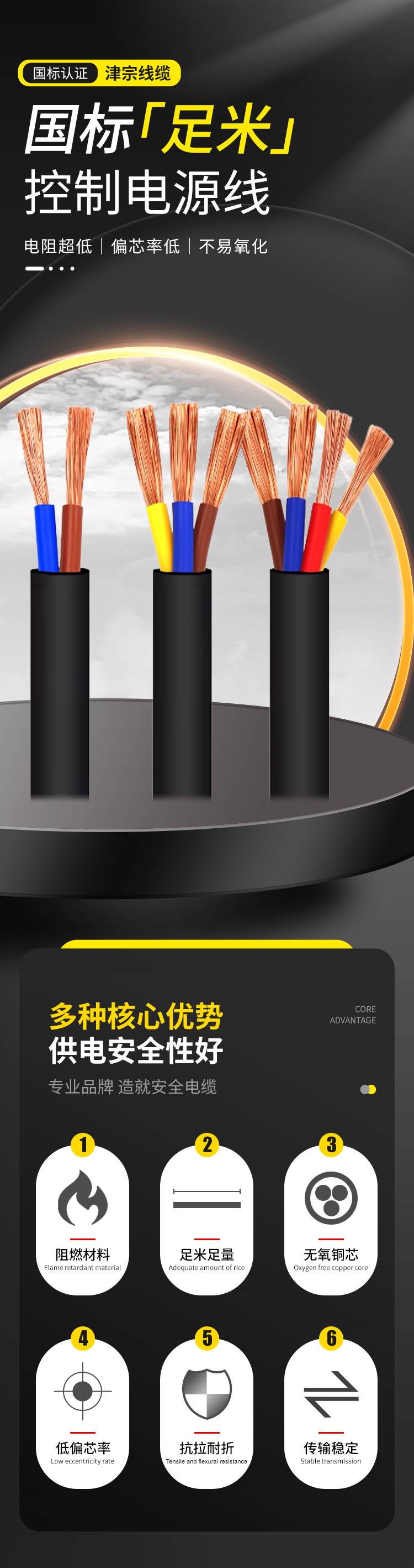 2*2.5平方铜芯护套电源线 用于电力传输 国标足米 津宗