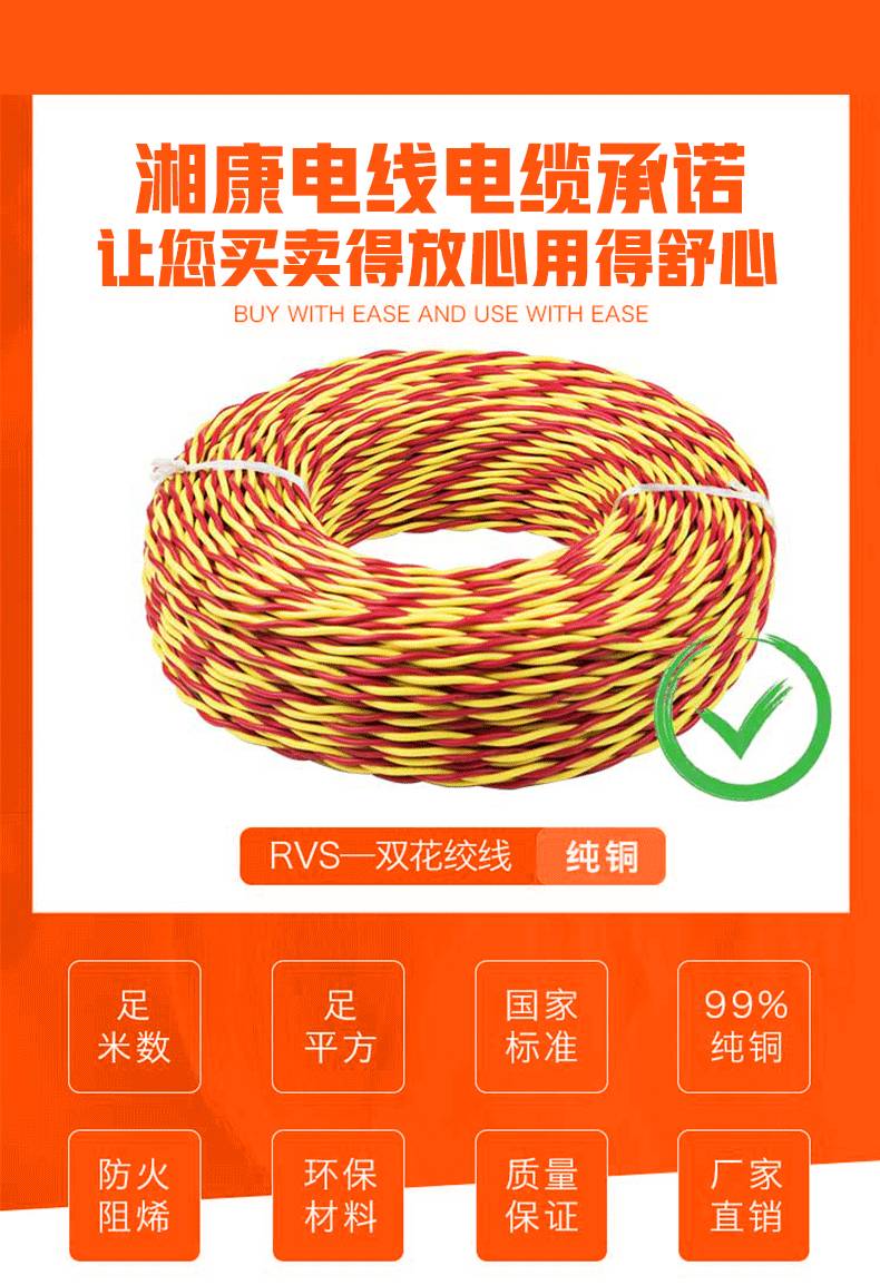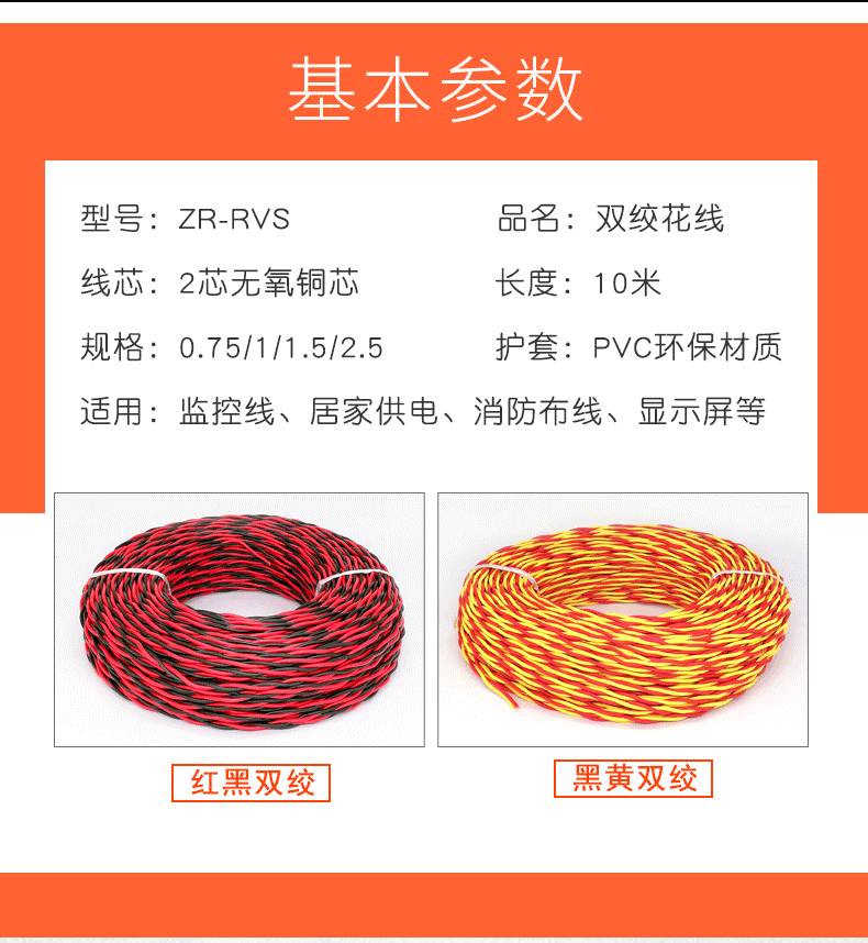 国标电源线RVS双绞线 品质保证 厂家现货 家用电线 粤讯阳电缆