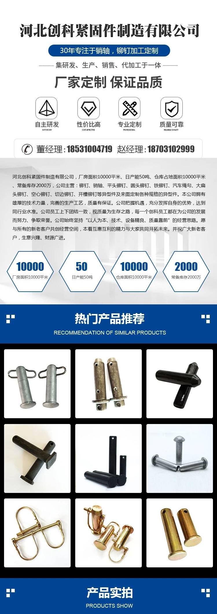 农机配件专用D型镀彩锌安全销 多规格加粗横插销制造厂 创科