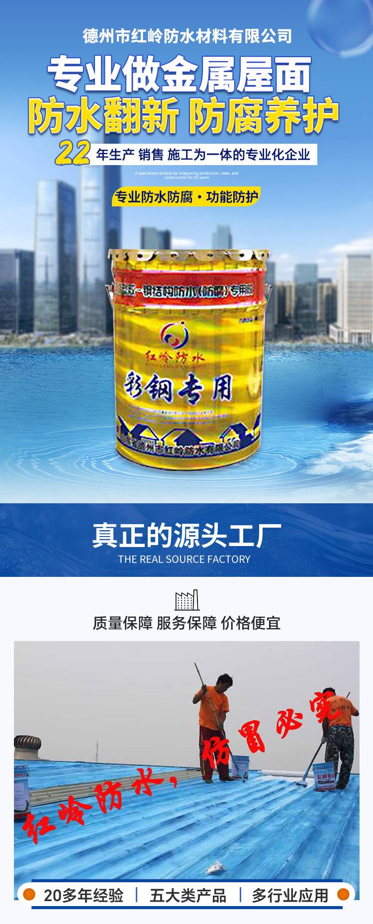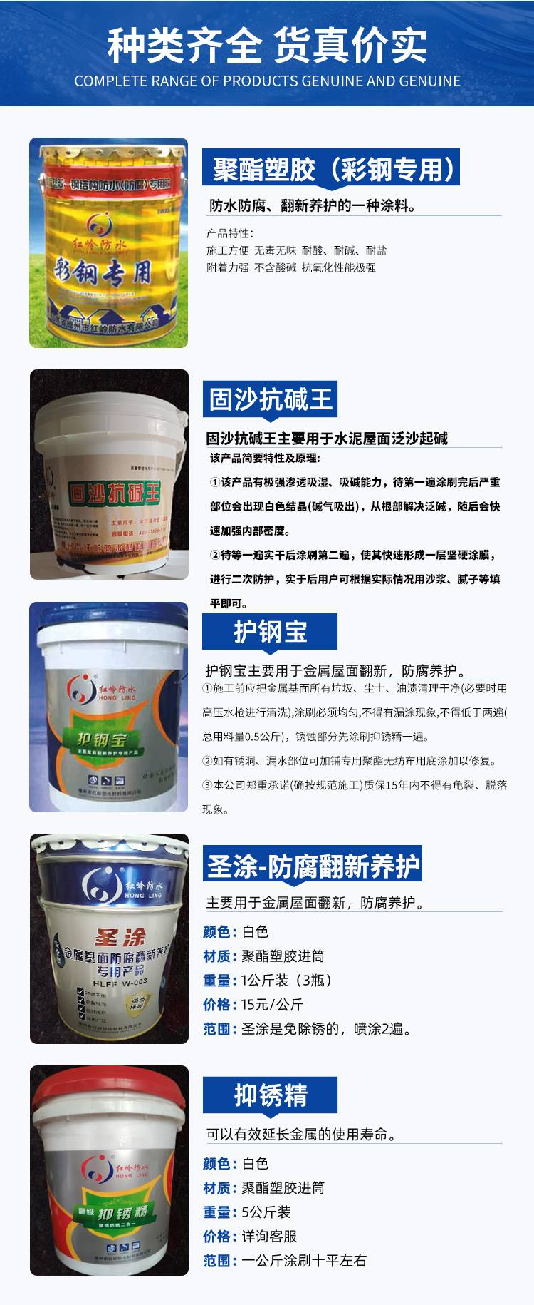 金属屋面换色养护 喷涂使用 红岭防水材料 规格齐全 护钢宝批发