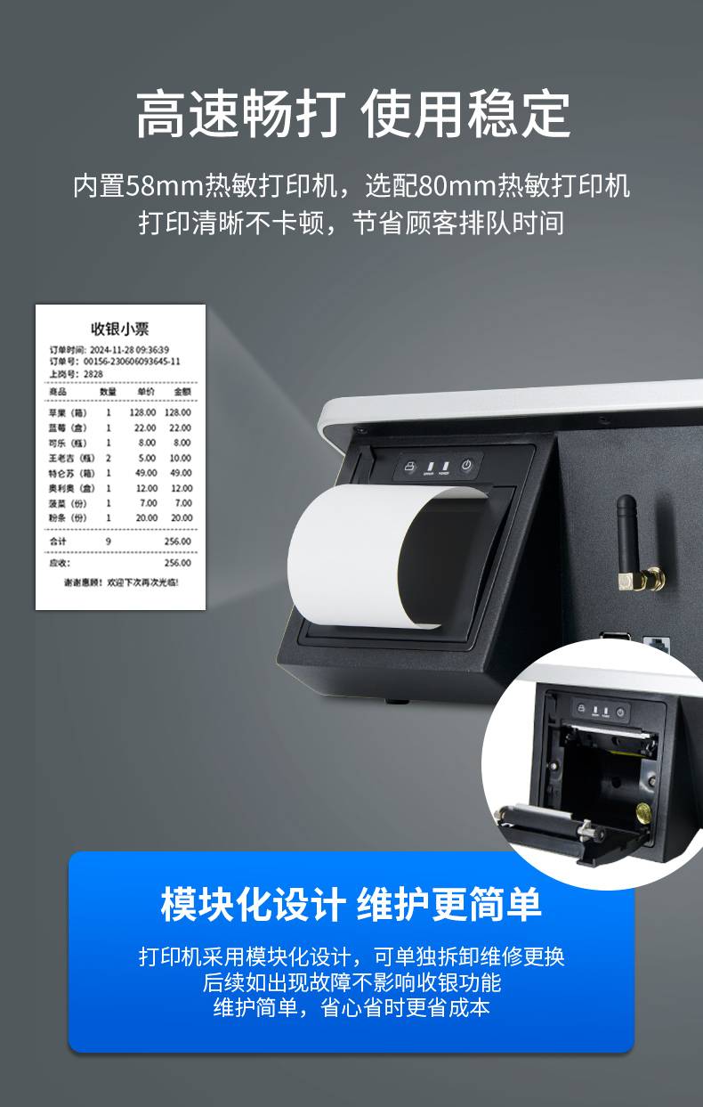 盈多多智能卧式收银机小尺寸收款机带打印机超市服装店便利店适用