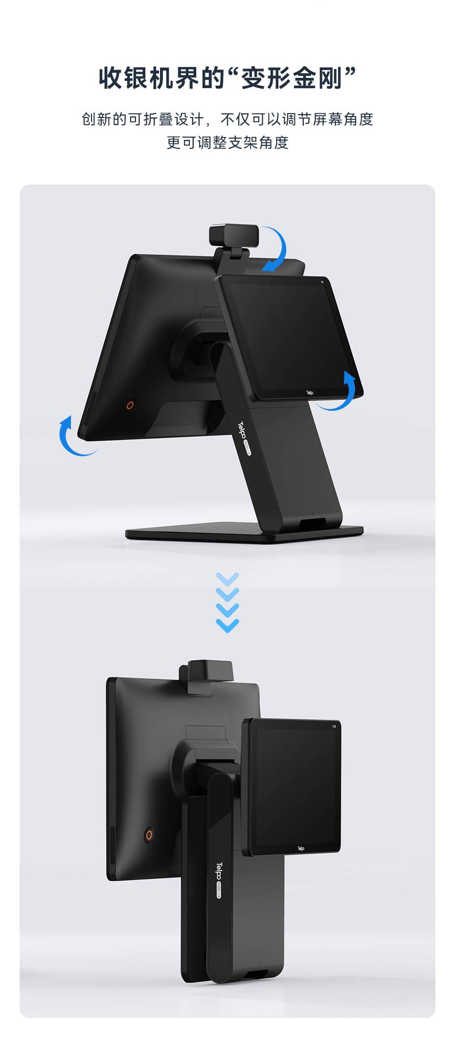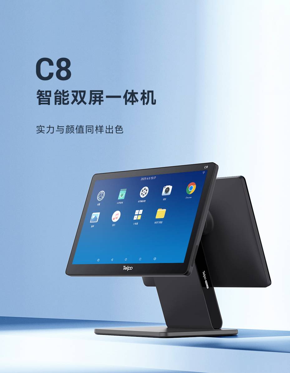 可折叠双屏收银机C8 高端商超15.6寸台式智能收款机硬件支持二开