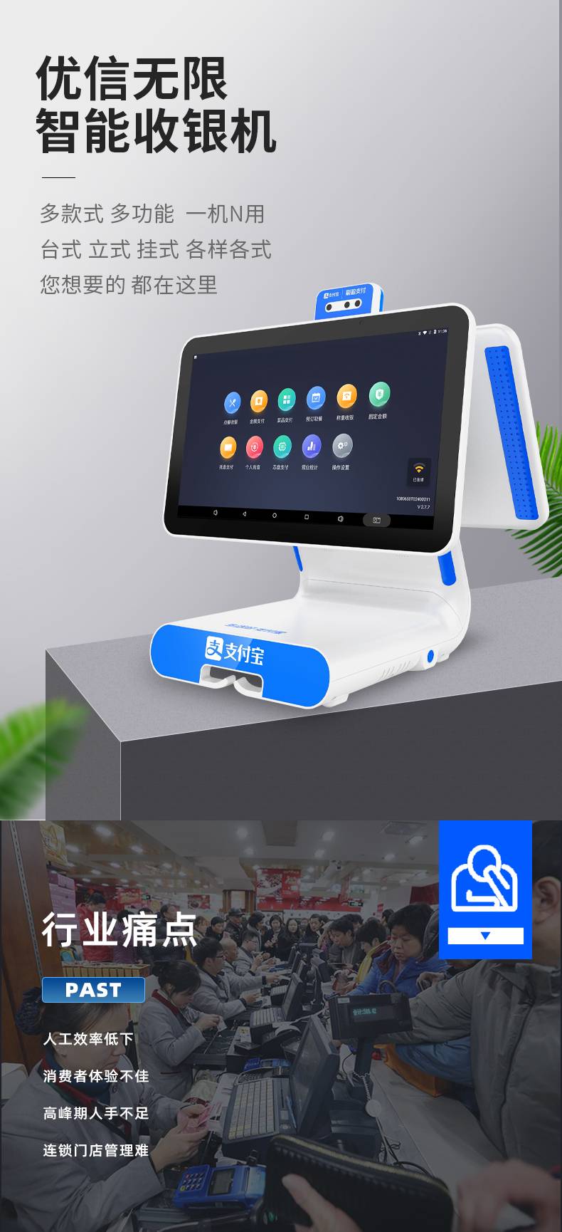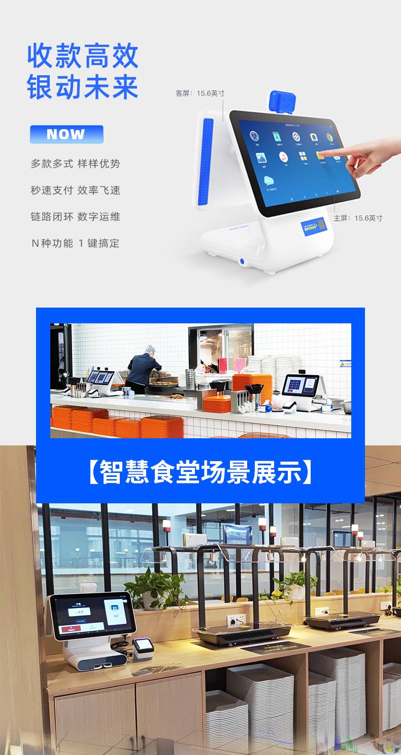 优信智能餐厅卧式收银机智慧食堂立式收款机饭堂刷卡系统支持对接