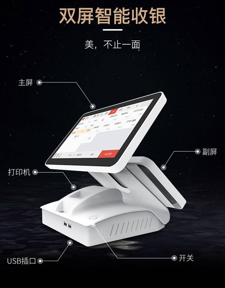 收银机一体机双屏超市便利店扫码收银系统母婴服装外卖wifi收款机