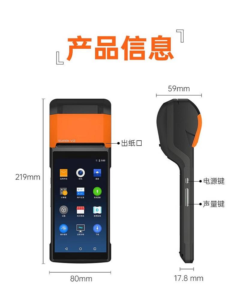 美团收银小票机移动点单扫码收款机商米(sunmi)V2(2G+16G)高配版