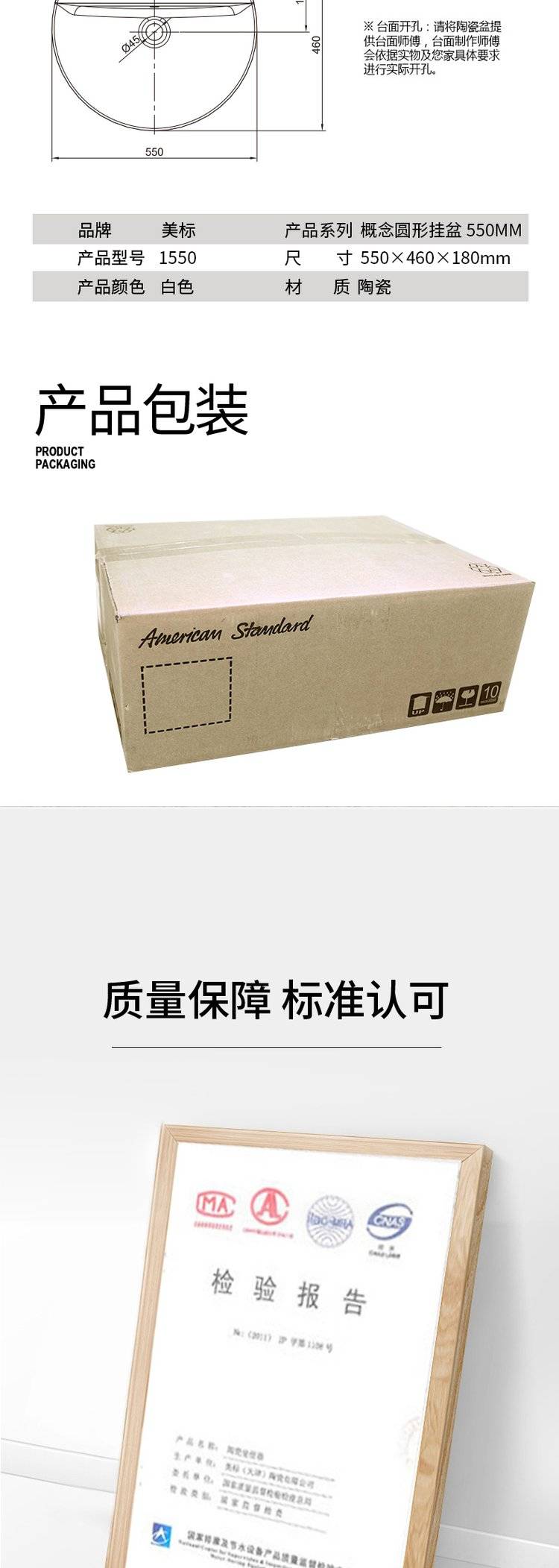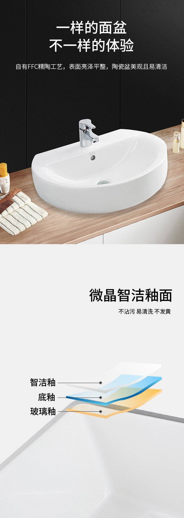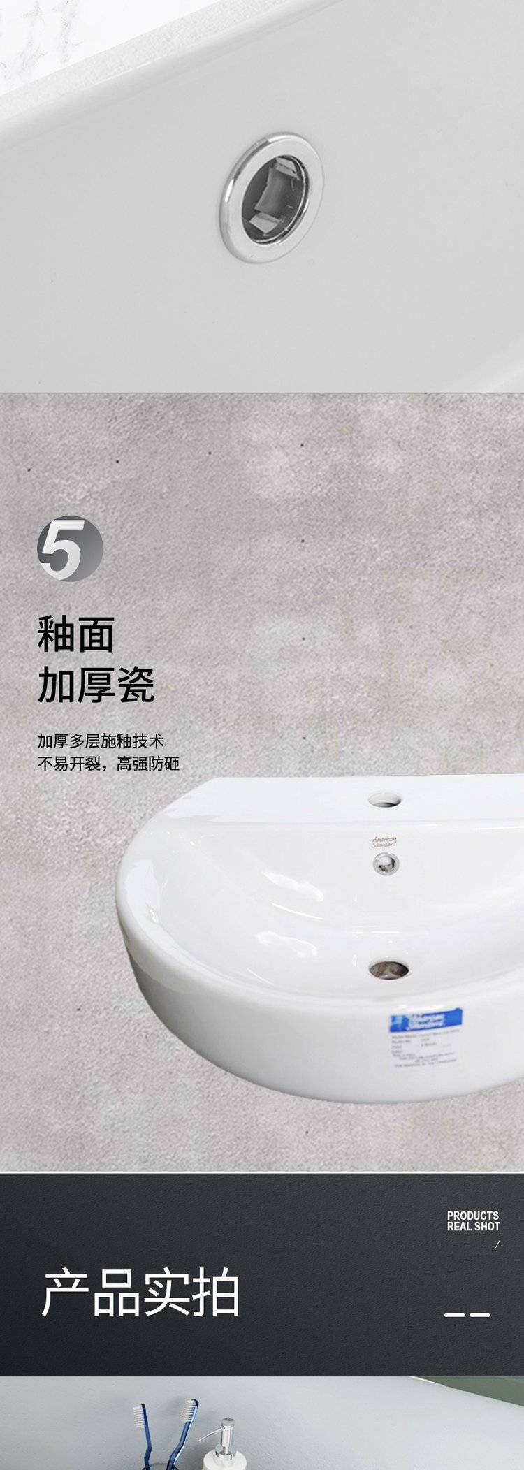 美标卫生间大理石简约台上盆陶瓷洗手盆洗脸盆台中盆半嵌入式1550
