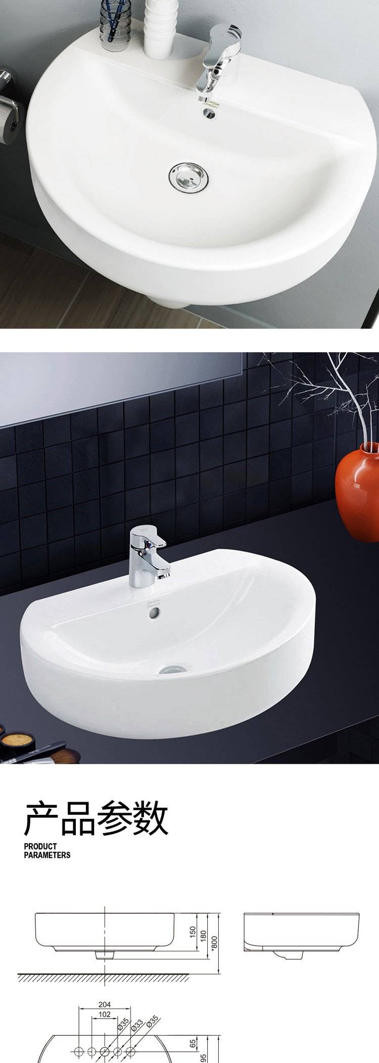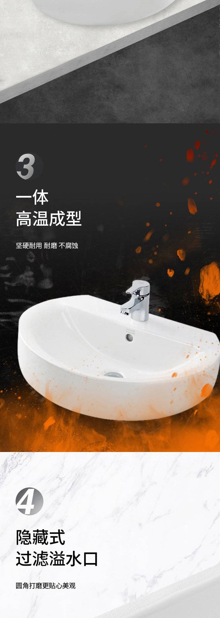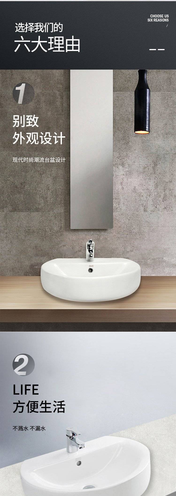 美标卫生间大理石简约台上盆陶瓷洗手盆洗脸盆台中盆半嵌入式1550